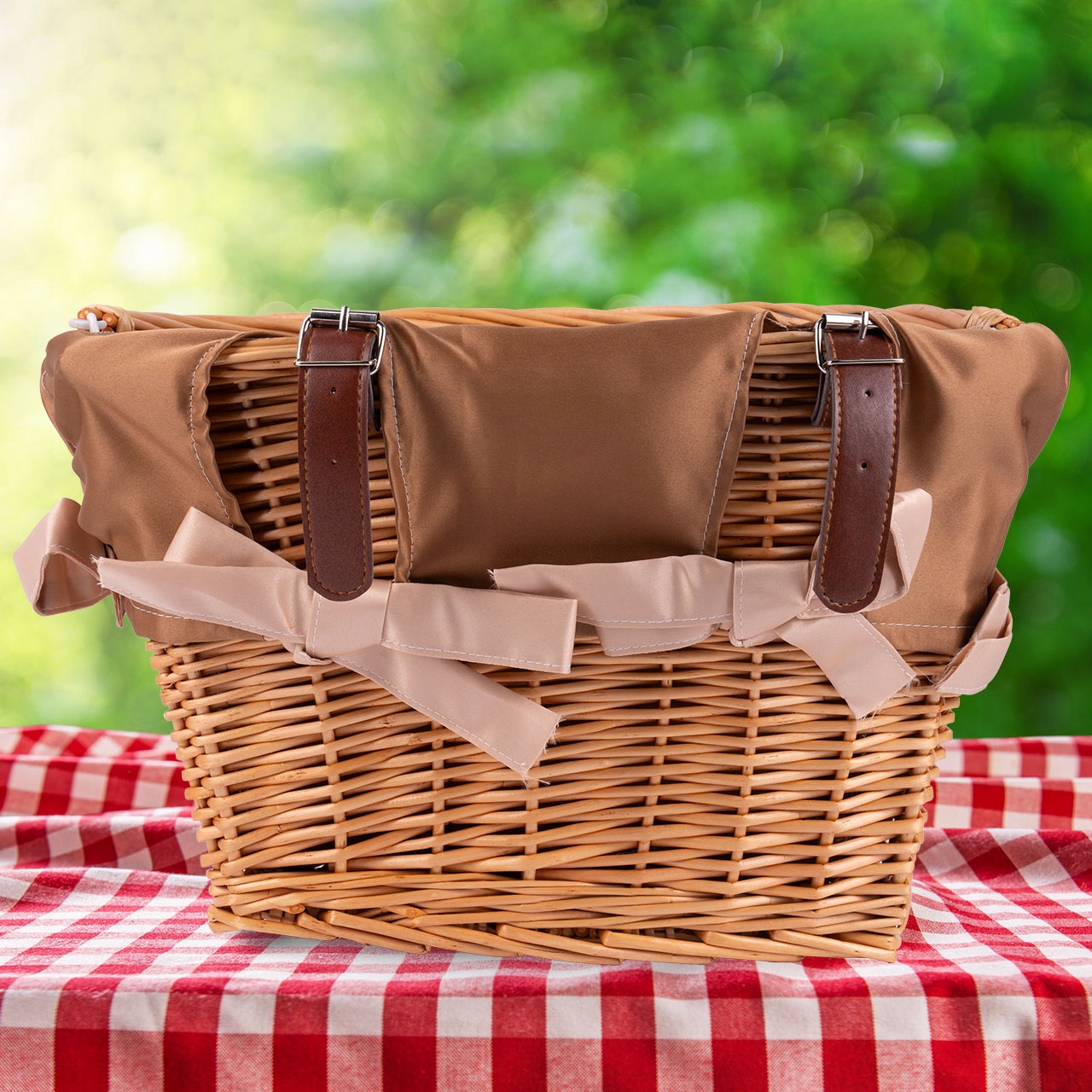KOSZYK WIKLINOWY NA ROWER Z BEŻOWYM WKŁADEM POJEMNY Z UCHWYTEM MOCOWANIEM