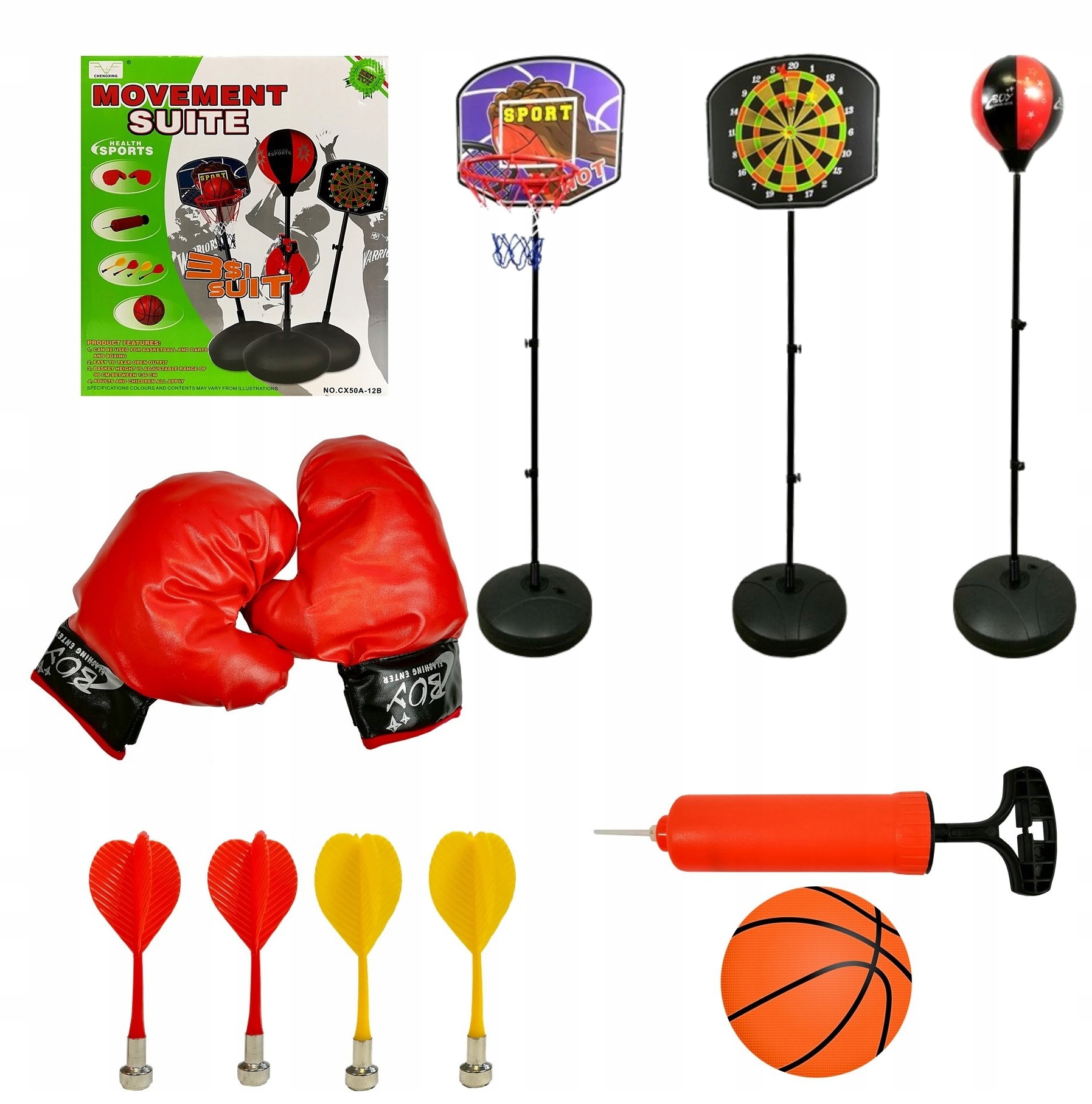 Игра в баскетбол, бокс или дартс положительно влияет на физическое состояние, развивает зрительно-моторную координацию и учит командной игре, гарантируя при этом, что ваш ребенок получит массу удовольствия и активного отдыха. Пусть ваш ребенок наслаждается движением и игрой с нашим набором 3 в 1!