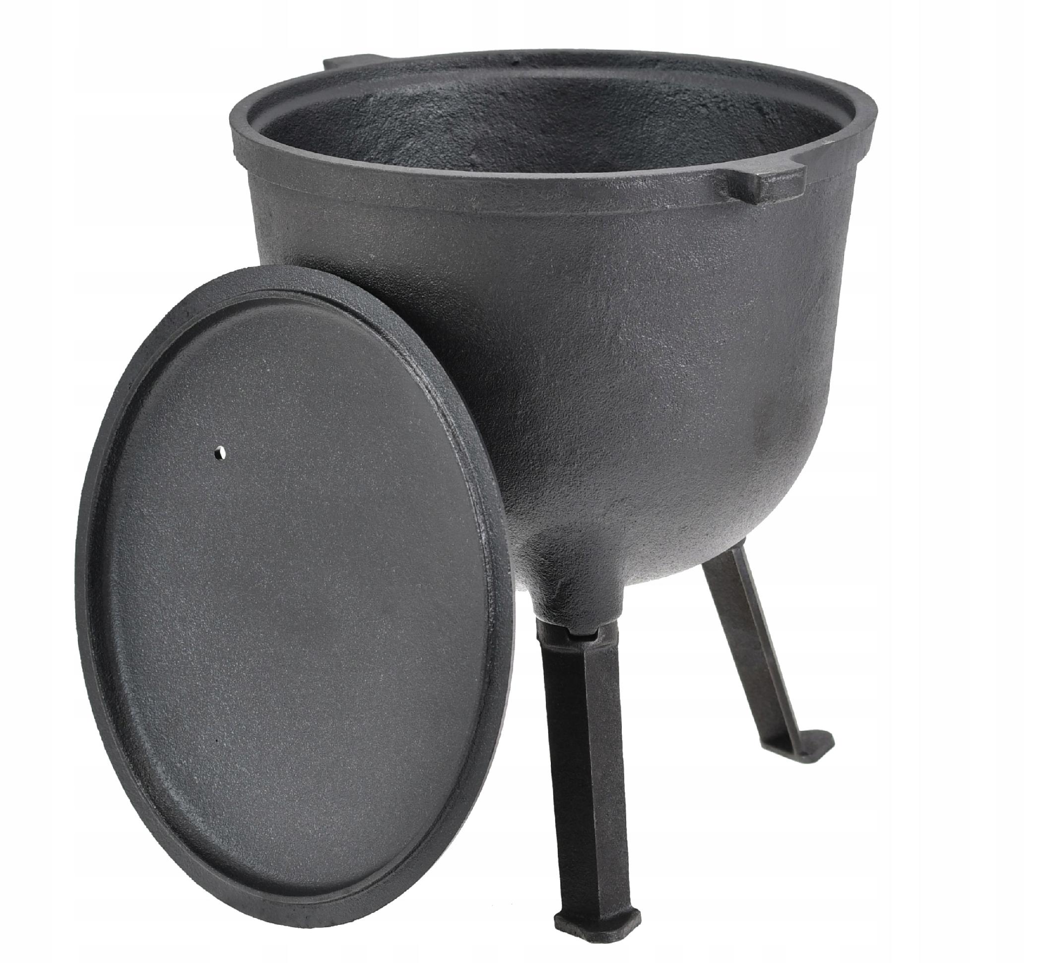 Казан заводской черненый, т.е. обожженный в жире, который обеспечивает пропитку чугунного покрытия и предотвращает пригорание продуктов.