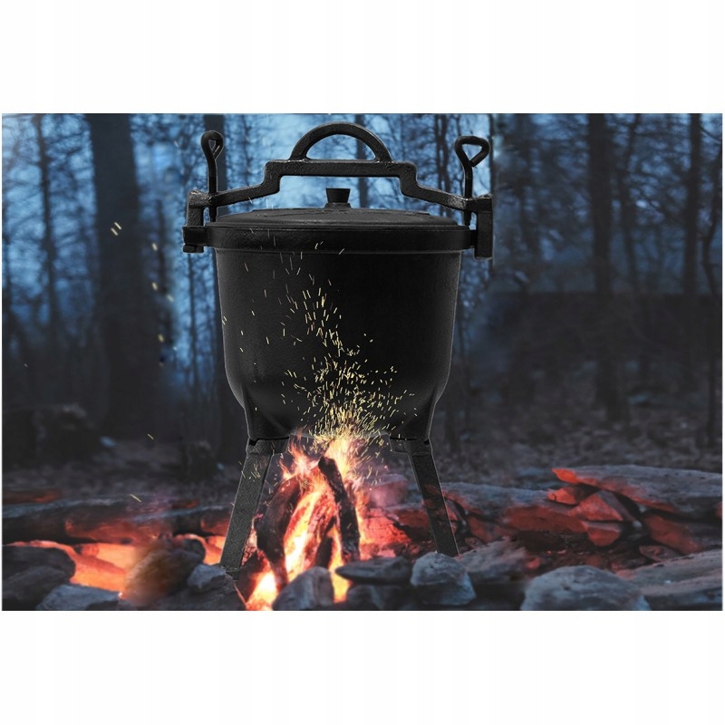 KOCIOŁEK MYŚLIWSKI ŻELIWNY EMALIOWANY GARNEK STOJĄCY NA OGNISKO 10L KAMILLE