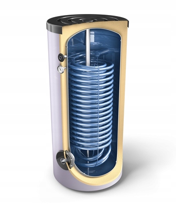 Процесс нагрева бытовой воды происходит благодаря встроенному спиральному змеевику, расположенному внутри бака – холодная вода поступает в бак и затем нагревается змеевиком. Когда вода нагревается, она подается в верхнюю часть бака для горячей воды. и распространяется по всему зданию.