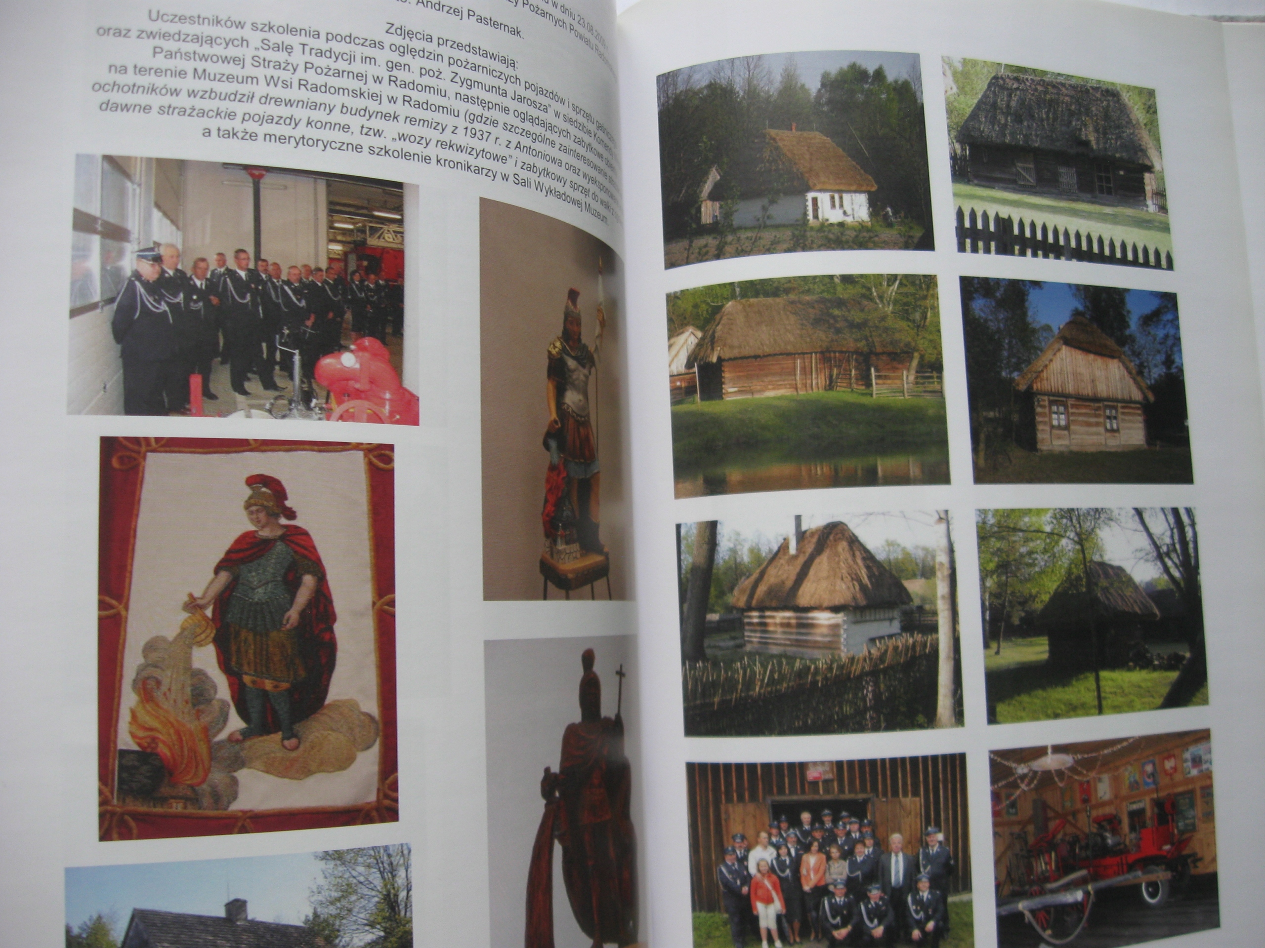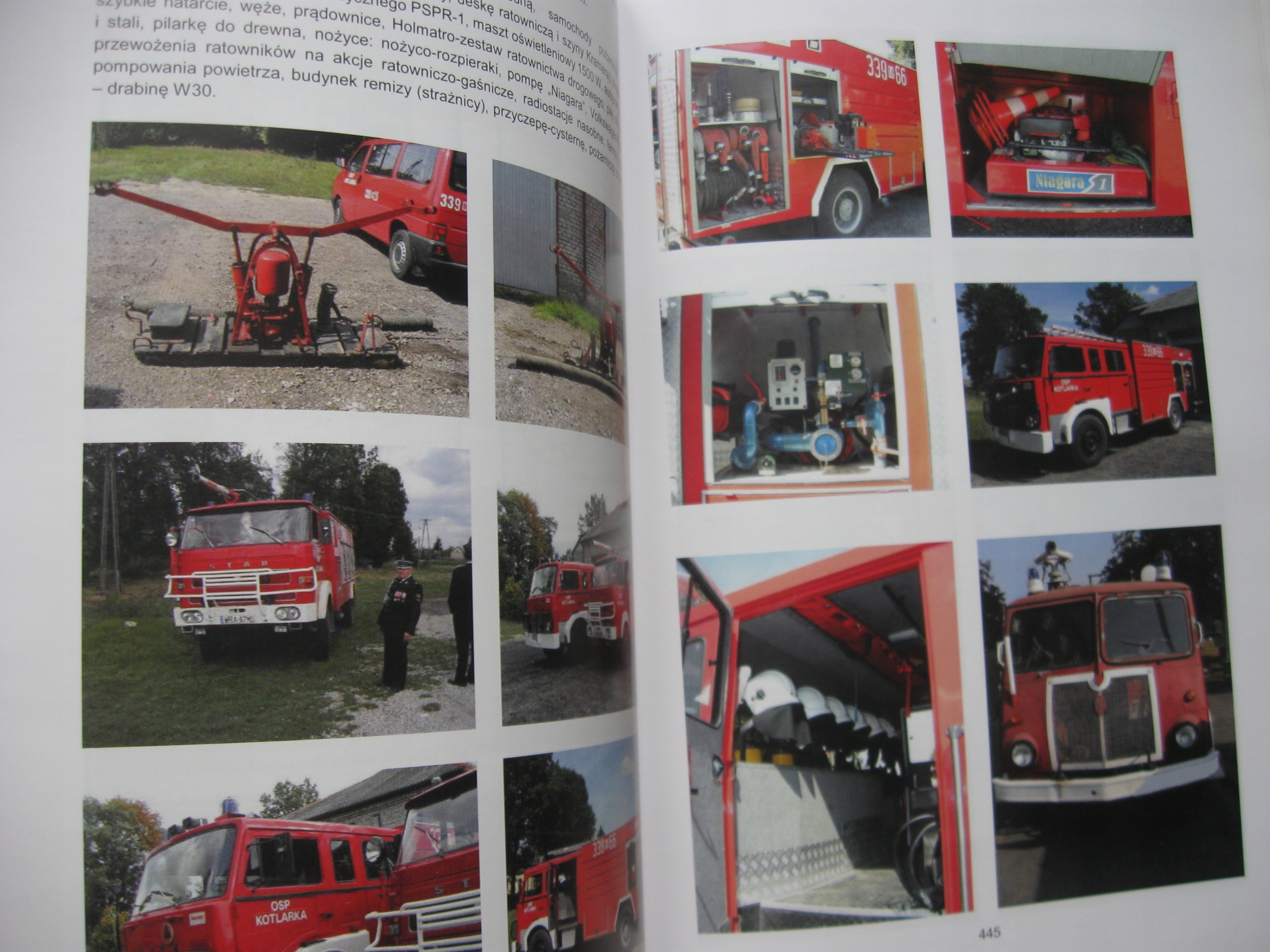 Содержимое включает многочисленные репродукции документов, фотографии техники и пожарных.