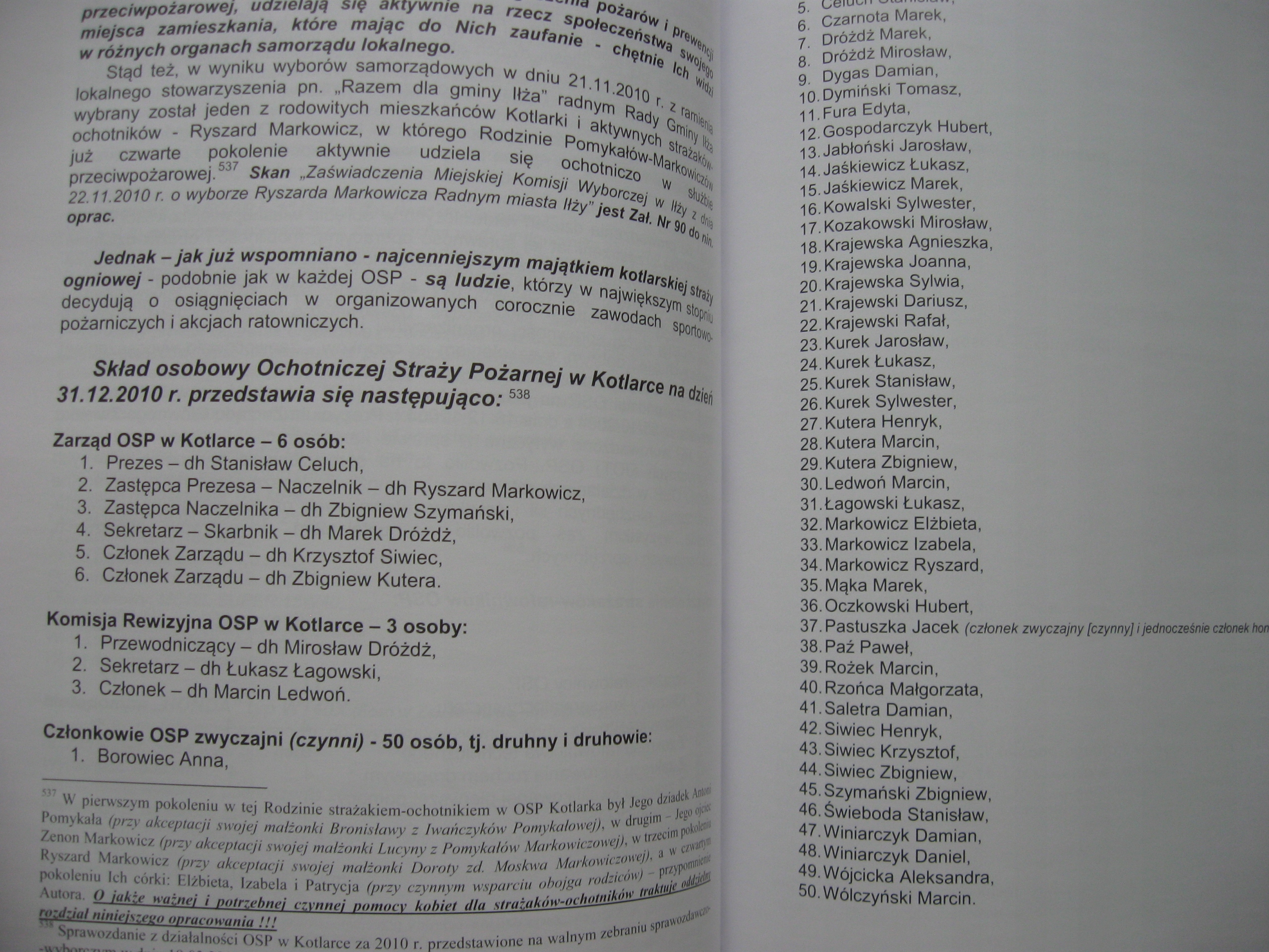 В 1926 году оно стало самостоятельным пожарным подразделением, первым командиром стал житель Котларок - Ян Целух.В то время Добровольная пожарная часть располагала, помимо прочего, четырехколесной пожарной машиной и гужевой бочковой повозкой.Техника охраны котла совершенствовалась очень медленно, так как пожарные приобретать все новое оборудование за свои средства....'