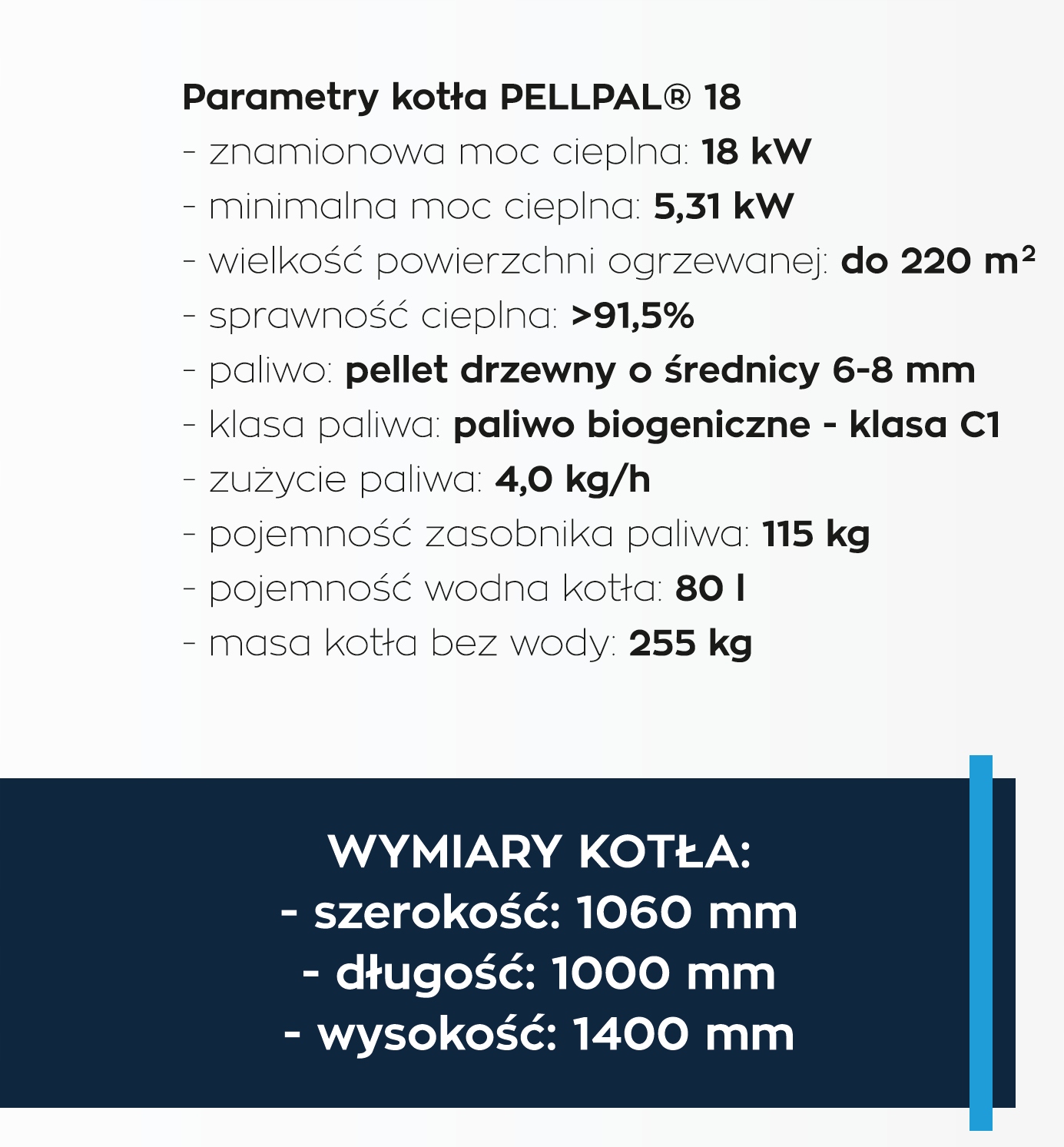 Если вы ищете котел для отопления здания площадью до 220 м2, выбирайте модель PellPal мощностью 18 кВт.