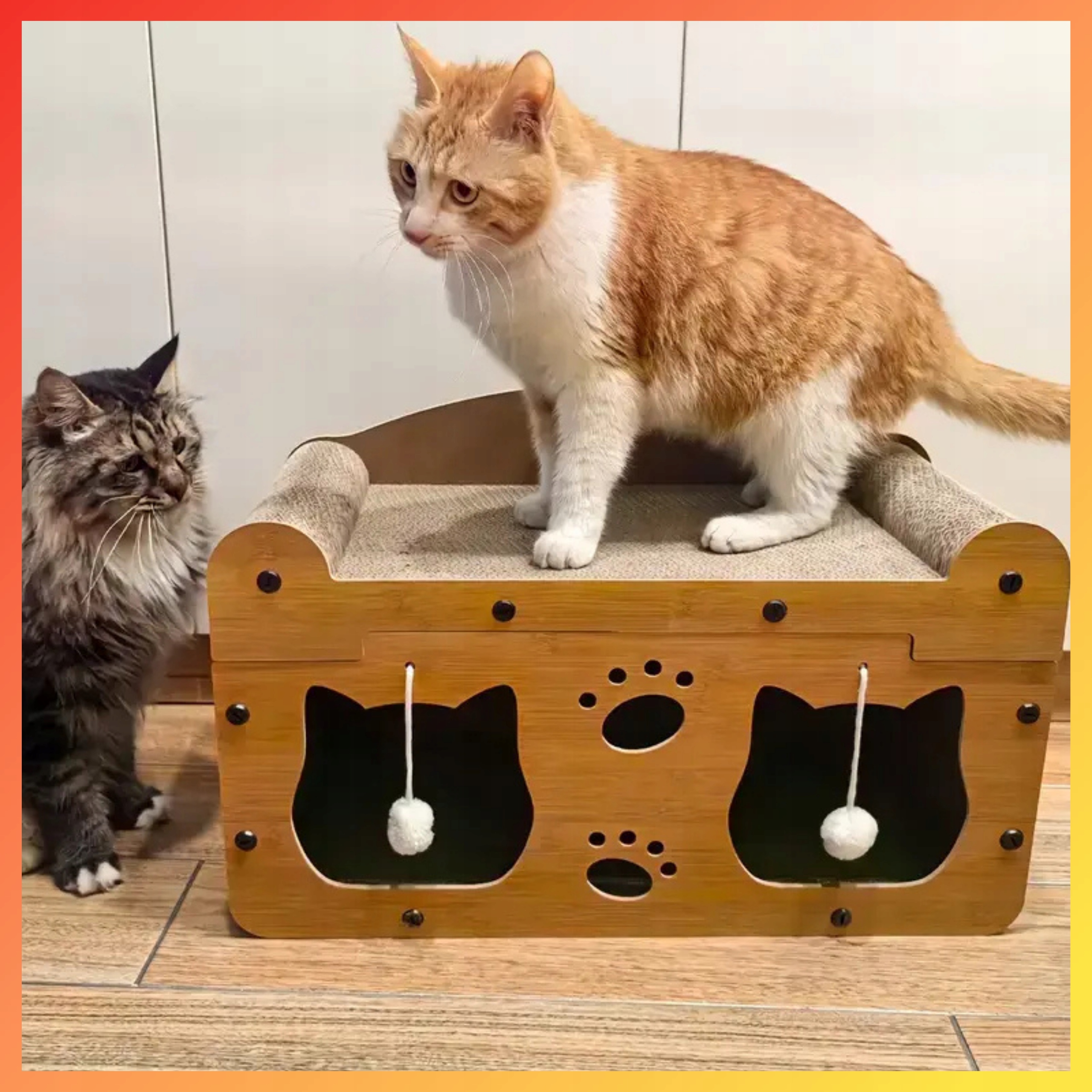 Верхние и боковые части дома сделаны из царапать картон b>, благодаря которой кошка может легко заточить когти, растягиваться и удовлетворить его естественные потребности.
