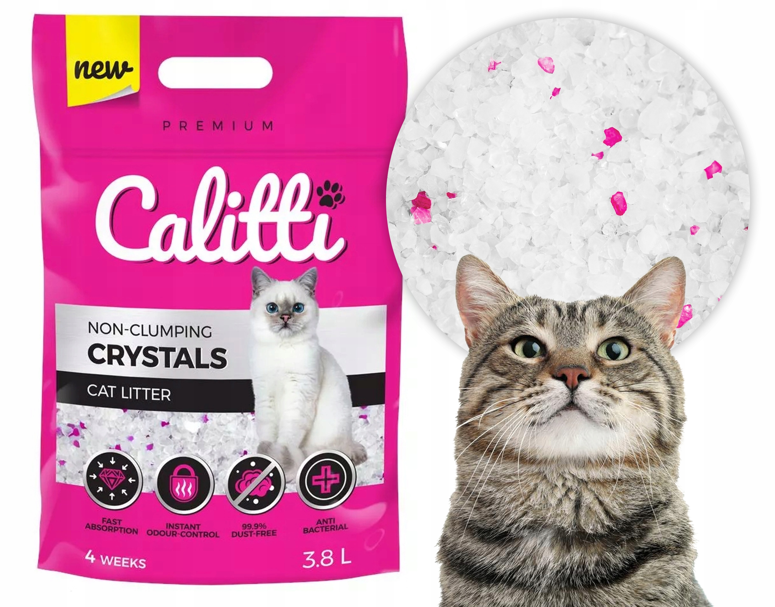 Calitti® Crystals – силиконовый наполнитель для самых требовательных кошек и их владельцев. Он быстро впитывает жидкость и устраняет неприятные запахи всего за несколько секунд. Беспыльная формула Dust-Free делает его абсолютно безопасным для людей и кошек, страдающих аллергией. Кроме того, он предотвращает рост бактерий, что делает поддержание чистоты в доме чрезвычайно простым и долговечным. А сэкономленное время вы проведете, играя с любимым котом.