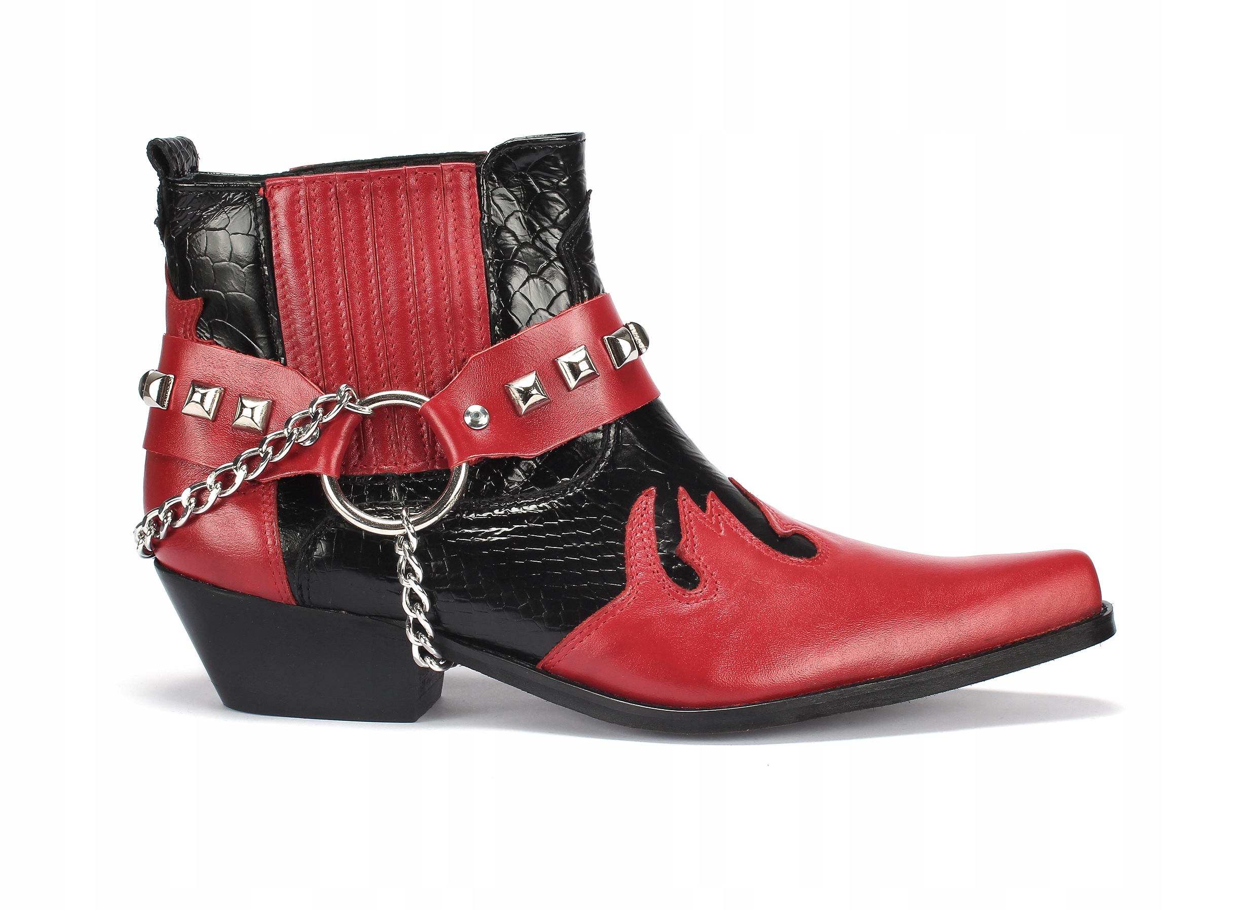 Классические ковбойские сапоги 630/к из натуральной кожи крупного рогатого скота. С верха имеется ластик, который значительно облегчает надевание обуви. Ковбойские сапоги Theness 2018 года, украшенные цепочкой и заклепками.