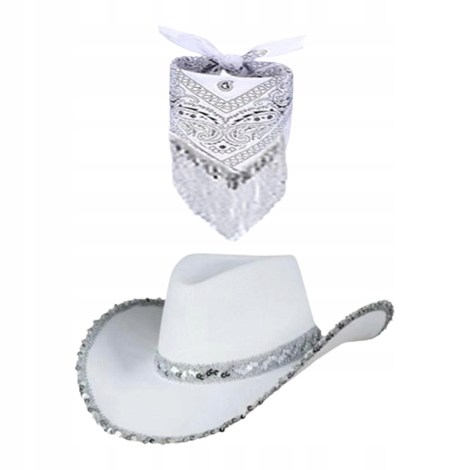 [Ковбойская шляпа] Ковбойская шляпа в западном стиле с банданой с полосами, украшением с блестками, мелкими деталями, которые выделят вас на вечеринке. Поможет вам создать красивый ковбой.