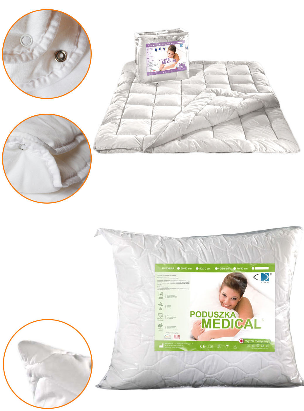 Одеяло MEDICAL 4 сезона и подушки польской фирмы AMW изготовлены из 48% хлопка и 52% полиэстера.