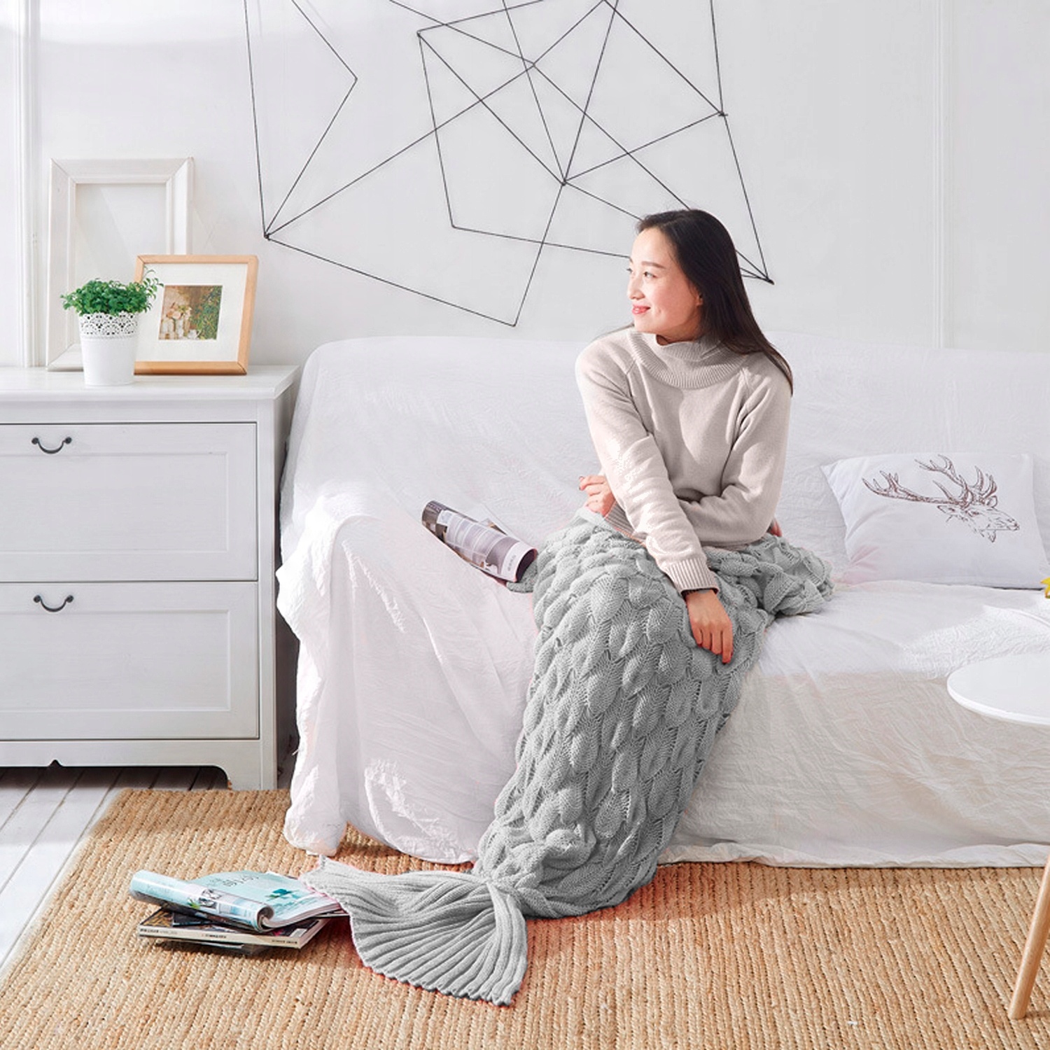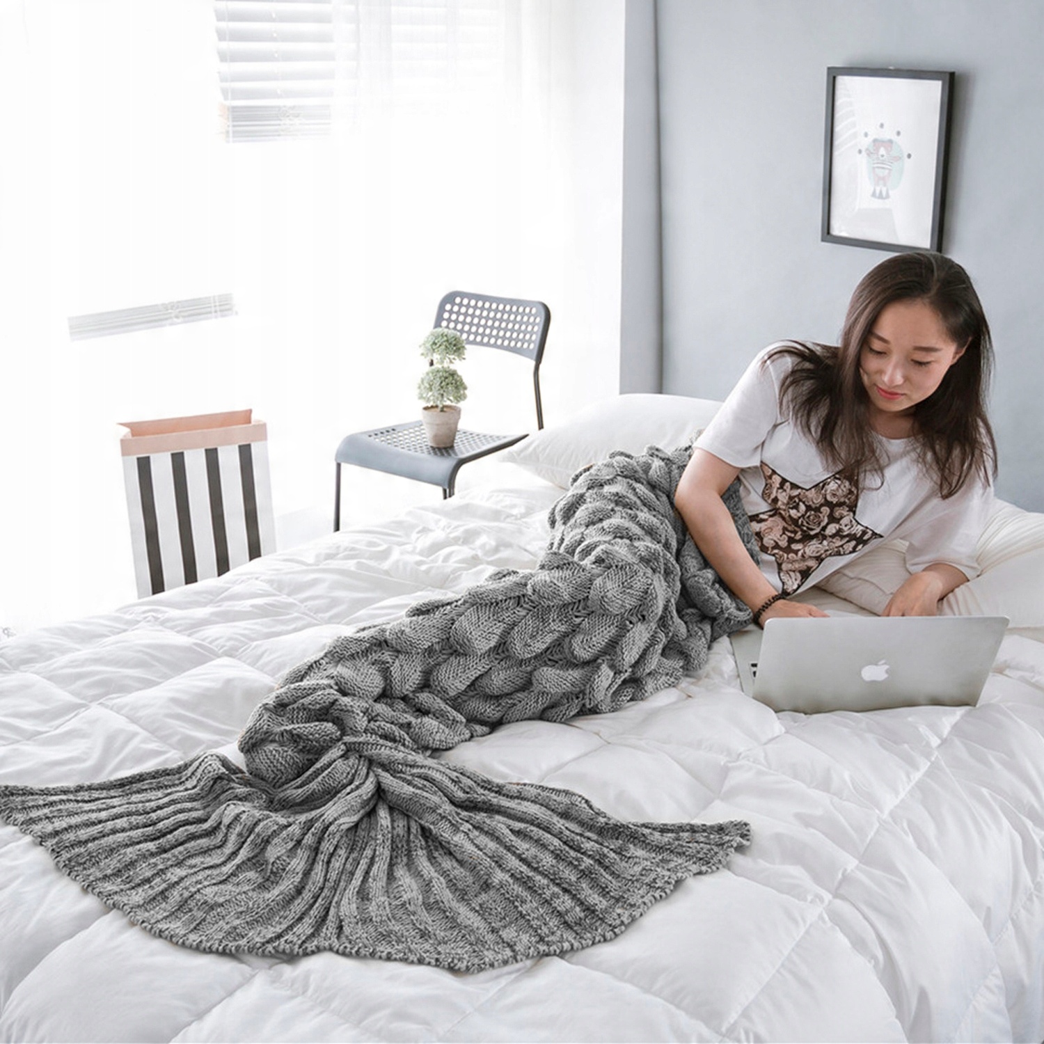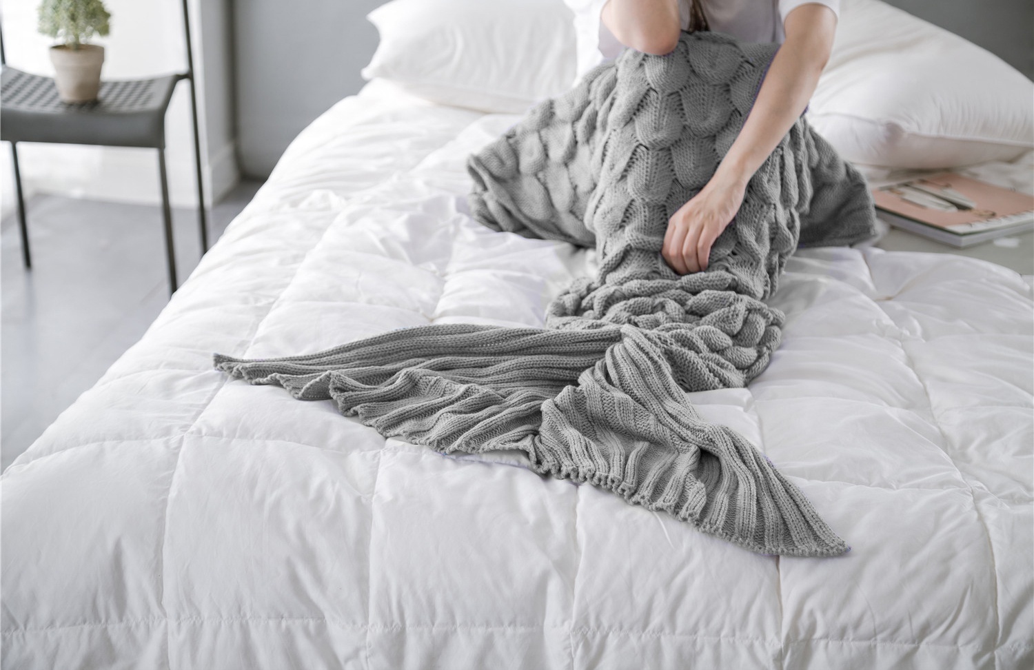 - УДИВИТЕЛЬНЫЙ ДИЗАЙН – одеяло выглядит потрясающе. Он понравится каждой женщине, которая в детстве любила сказки о русалках. Больше никаких неприглядных и непривлекательных бабушкиных одеял, которые стыдно вынимать в компании. Одеяло-русалка всегда будет выглядеть безупречно.