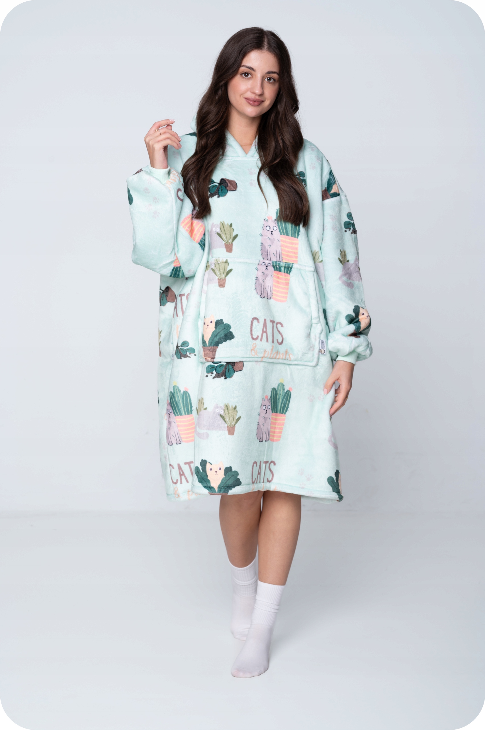 ОДЕЯЛО СВИТШОТ Оверсайз теплое ОДЕЯЛО СВИТШОТ XXL 2в1 Толстовка с мехом кошек одеяло подарок