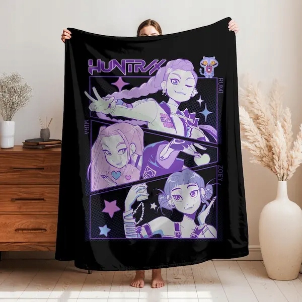 Одеяло с мотивом Huntrix KPop Demon Huntrix одеяло подарочное розового цвета