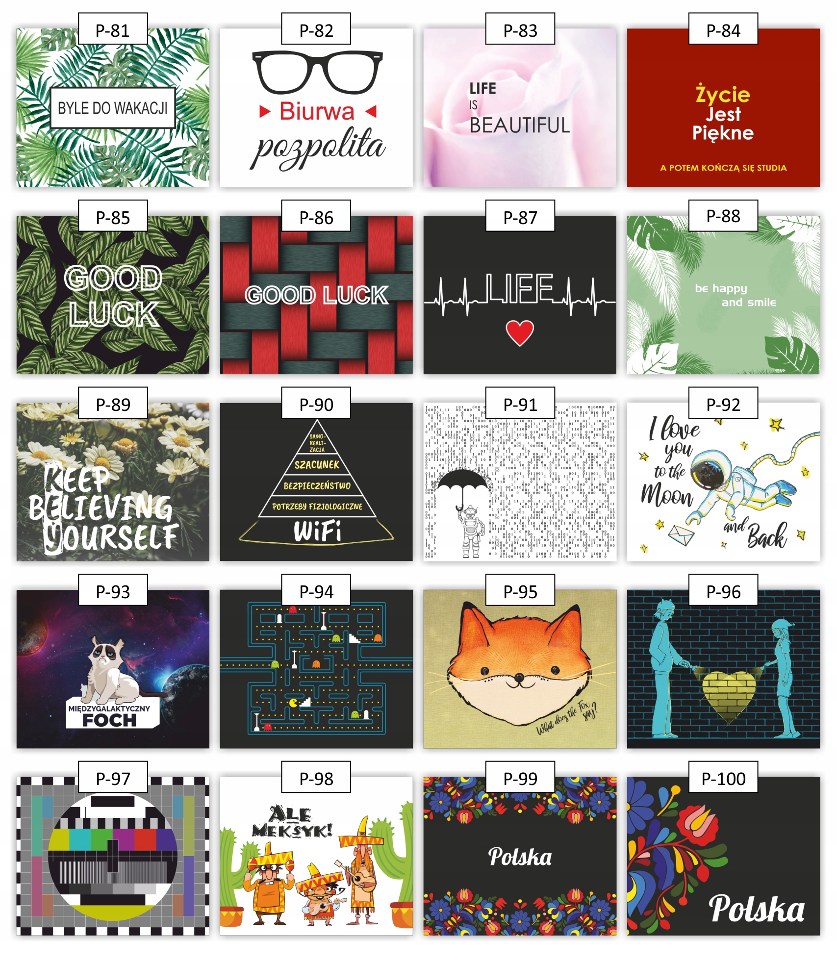 На нашем аукционе вы найдете 100 различных шаблонов ковриков для мыши с полноцветной печатью.