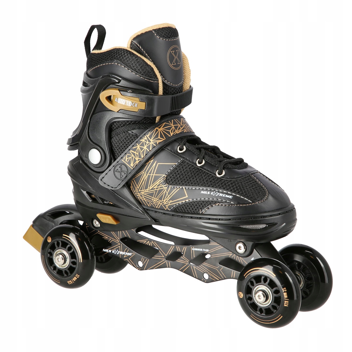 NH18192 РОЛИКОВЫЕ КОНЬКИ 4в1, ЧЕРНЫЕ И ЗОЛОТЫЕ РАЗМЕРЫ (34-38) С РАЗМЕРАМИ ПЛ. ХОККЕЙ НИЛЬС ЭКСТРИМ