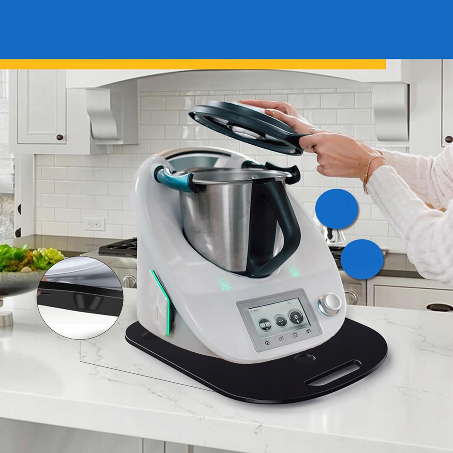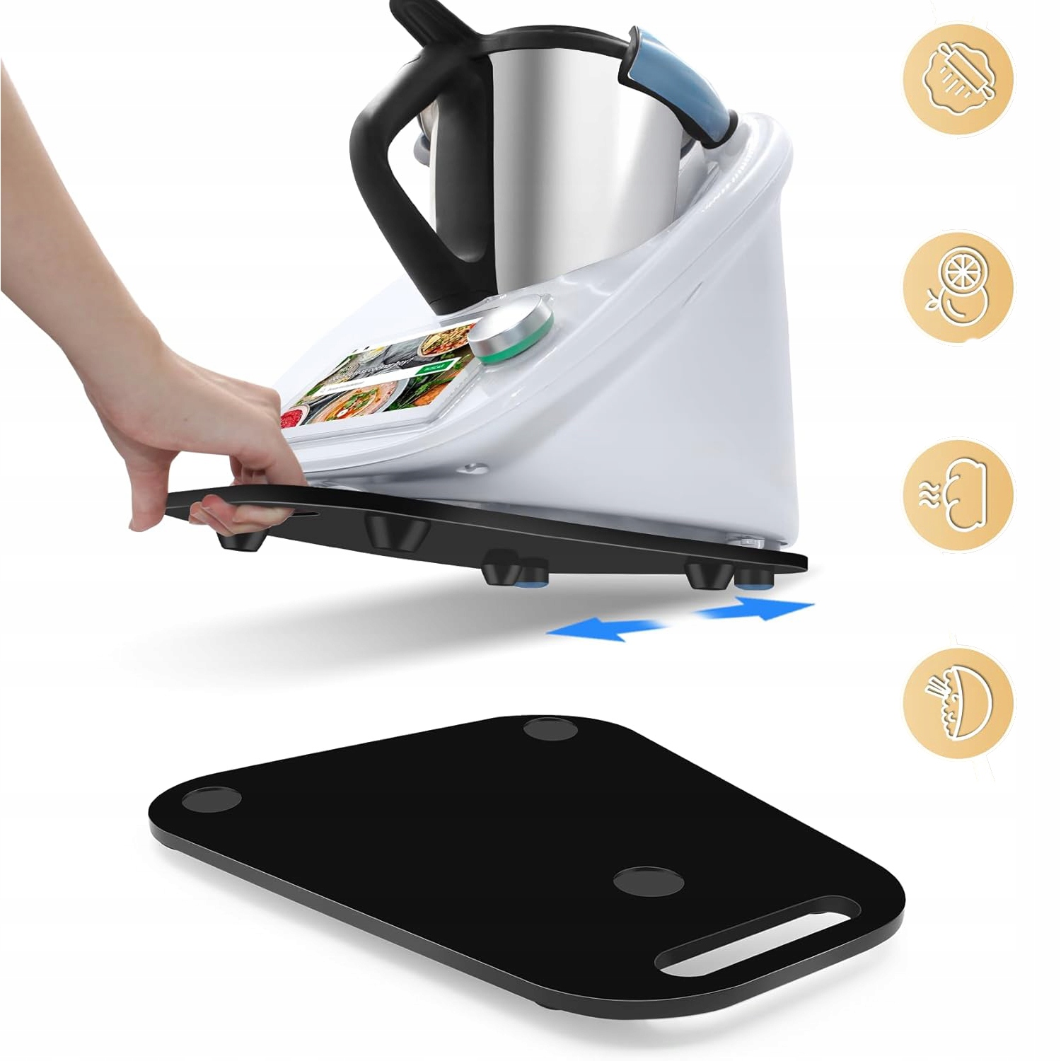 ✨✨✨【 максимальная стабильность с резиновыми ногами】 аксессуары для скользящей доски оснащены четырьмя амортизирующими резиновыми ножками, которые обеспечивают безопасное и стабильное использование. Даже в случае работы без надзора ваш термомикс остается на своем месте без скольжения, благодаря которой плата для термомикса TM6/TM5 всегда работает надежно.