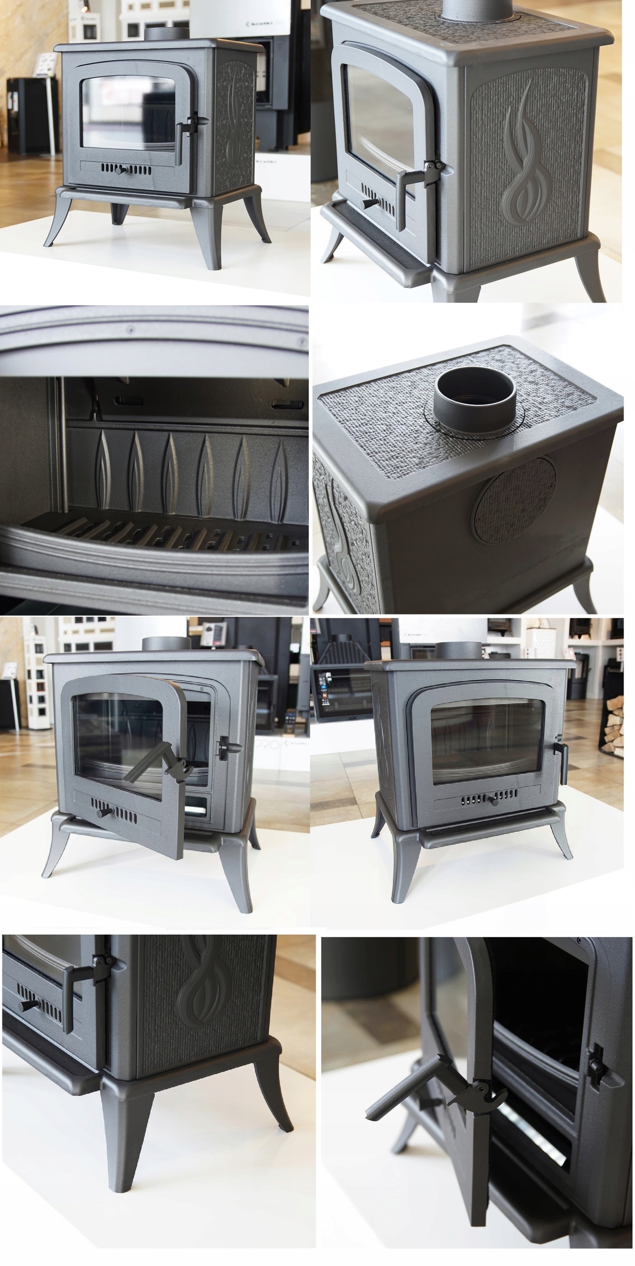 Максимальное использование тепла и безаварийная работа благодаря стенкам камина из высококачественного чугуна , толщиной 8 мм.