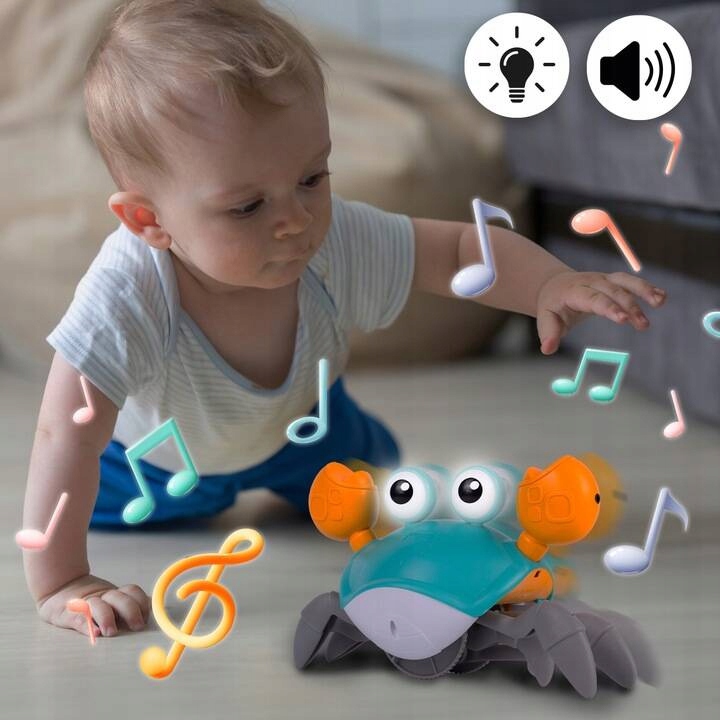 Шагающий краб оснащен датчиками, которые распознают препятствие, благодаря чему игрушка меняет направление движения! Он будет аккуратно перемещаться между мебелью в комнате, не мешая веселью!