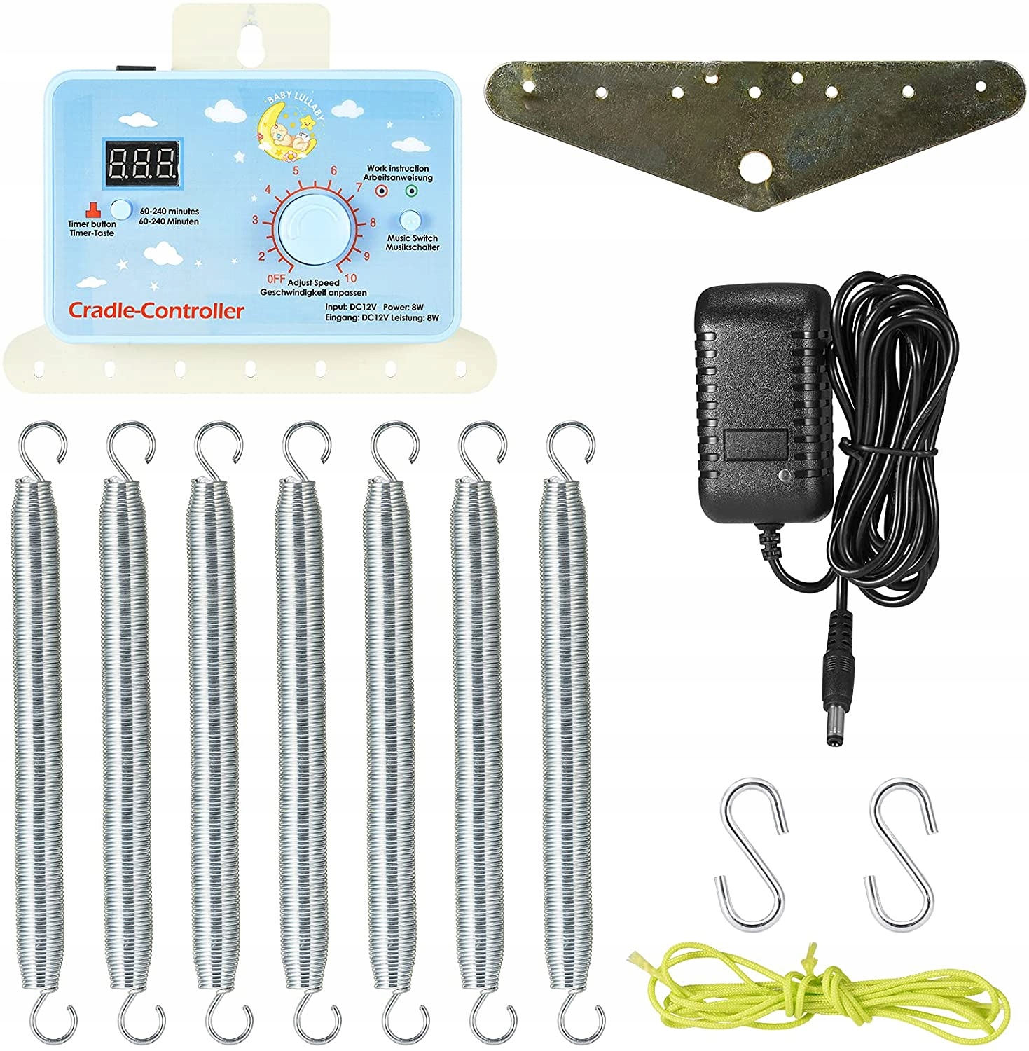 Освободив руки - этот колыбель контроллера для детей практичен и прочный, стабильный и тихий. Сохраните энергию и убедите, что ваш ребенок быстро засыпает. Звук музыки может быть регулируемым, безопасным и простым в использовании, низкое напряжение, может сэкономить энергию и бесплатные руки