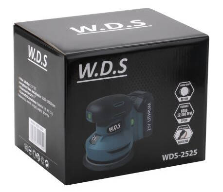 Grinder WDS2525 Battlerier, среди прочего, разрешается измельчить и полировать поверхность. Он адаптирован для работы с деревянными, металлическими, штукатурными и искусственными пластмассами. Неославившаяся отделка гарантирует определенную шлифовальную шлифту. Благодаря своему дизайну, он подходит для работы для правых и левых людей. Кроме того, мы прикрепляем 1 ПК наждачной бумаги, батарею 3AH, зарядное устройство. Упаковка