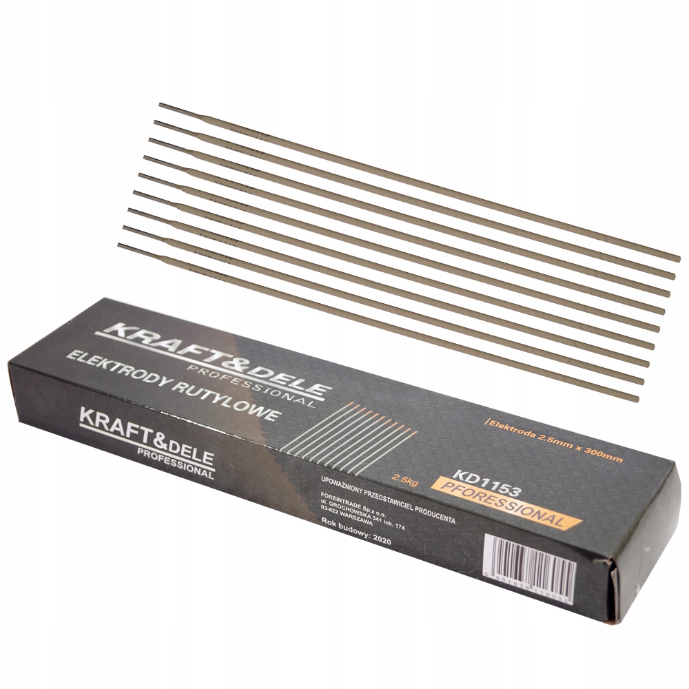 Сварочные электроды KD1153 известной марки Kraft&Deleимеют размер 2,5 х 300 мм и подходят для сварки во всех положениях.