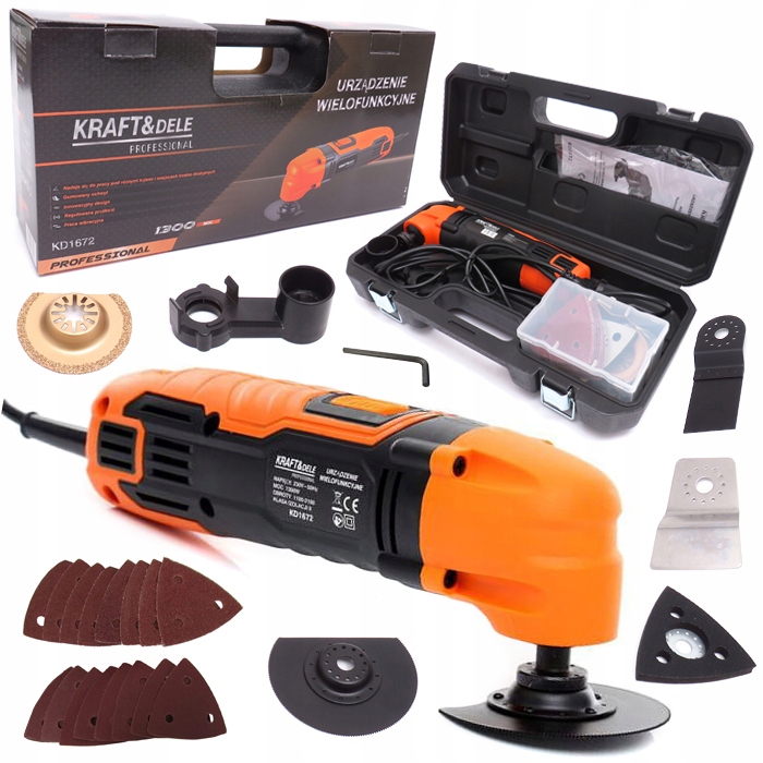 Многофункциональное устройство от Kraft & dele предназначено для шлифования и сглаживания небольших областей, распиливания, очистки и поглашения с использованием различных аксессуаров