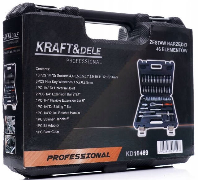 Чрезвычайно обширный набор инструментов Kraft&Dele с индексом KD10469. Инструменты отличаются надежным качеством изготовления, прочными материалами и удобным чемоданом, в котором каждому инструменту есть свое место.