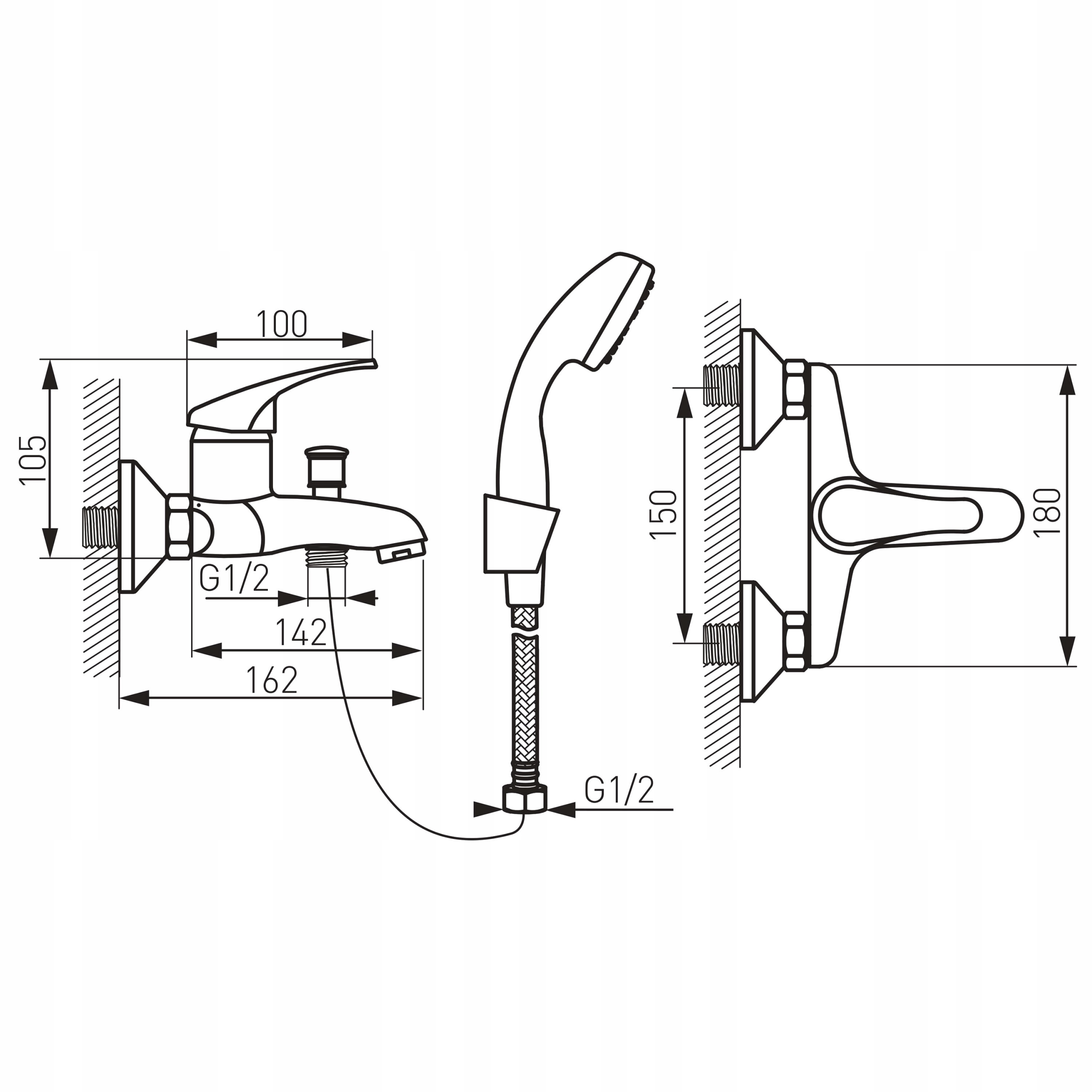 КРАН ДЛЯ ДУША ДЛЯ ВАННЫ + ДУШЕВОЙ ШЛАНГ + РУЧКА BBC11 BASIC FERRO