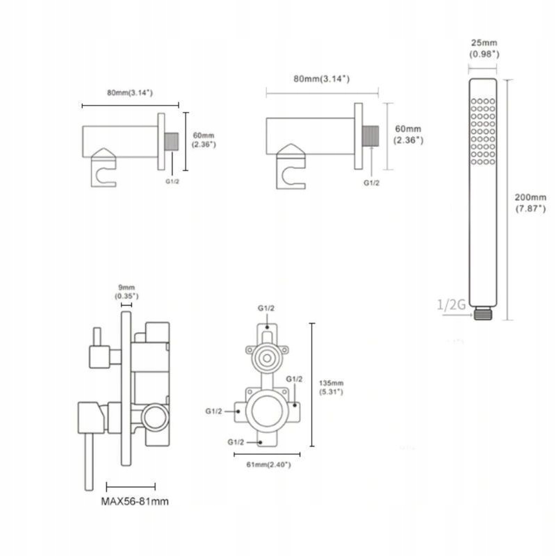 Все элементы комплекта изготовлены из Изготовлен из очень прочной латуни - имеет выход для душа, шланг/трубку и дополнительный нижний излив.