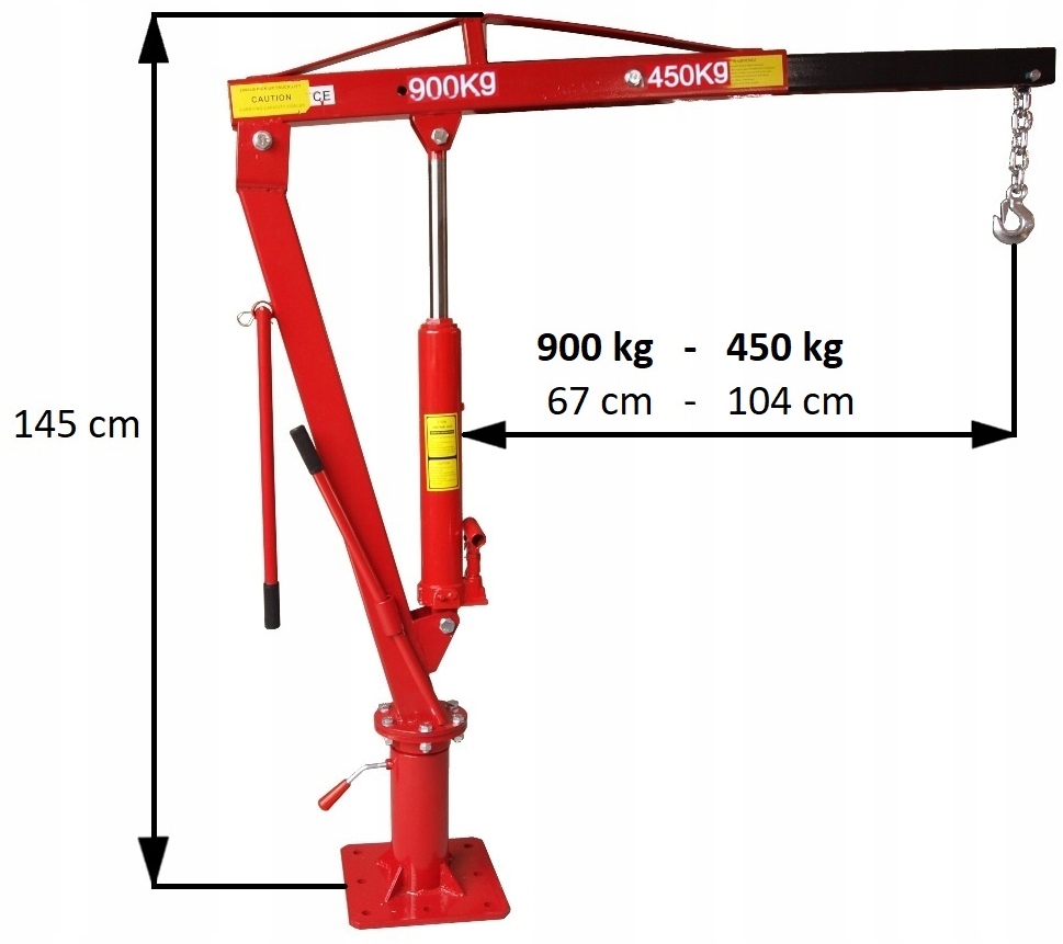 - Длина стрелы от привода до крюка: 67–104 см (фиксируется на 2-х отрезках).