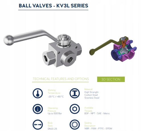 Трехходовой шаровой кран КВ3Л-404 является надежным решением. в области силовой гидравлики.