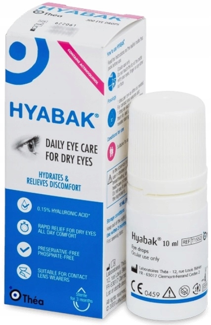 Hyabak — гипотонический раствор, предназначенный для этого. предназначен для глазных капель или для использования на контактных линзах. Hyabak, увлажняющие капли для глаз и линз обеспечивают длительное увлажнение и защиту от вредных погодных условий, даря ощущение облегчения и комфорта.