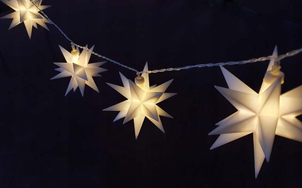 КРАСИВІ 10 шт СВІТЛОДІОДНІ ЗІРКИ БІЛИЙ ТАЙМЕР 7,5 м 12 СМ