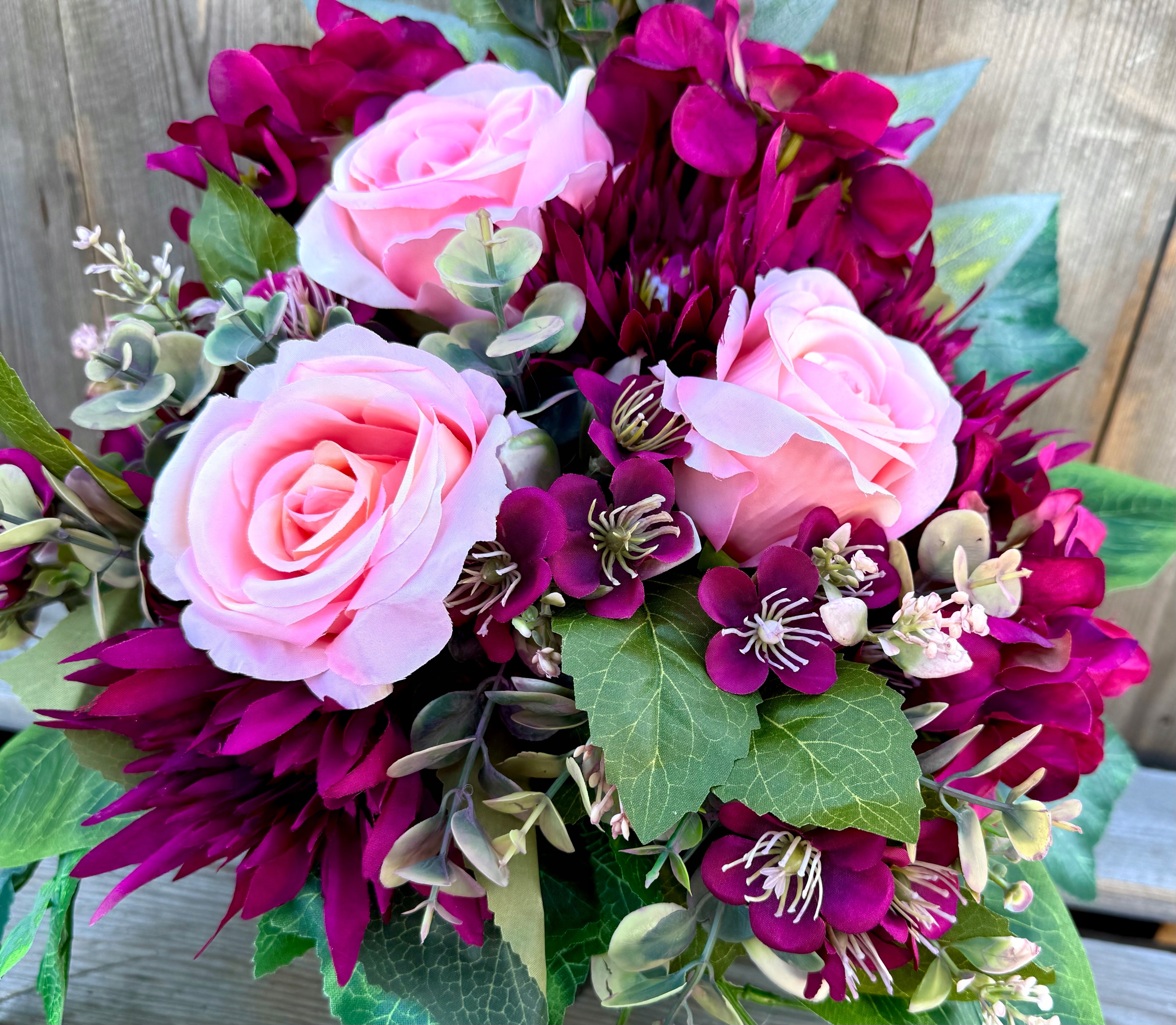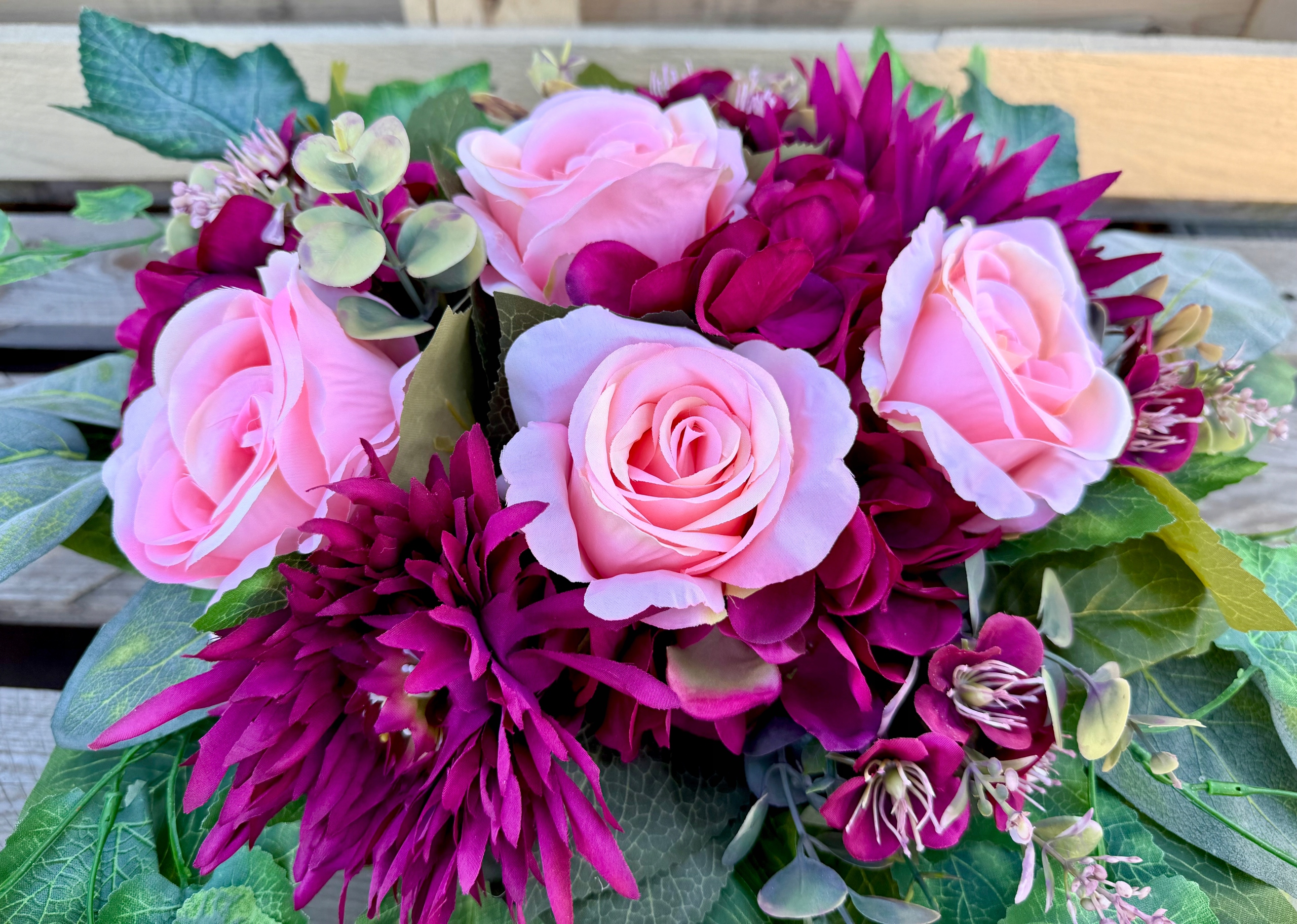 Все цветы искусственны. Все наши композиции сделаны вручную в нашей студии с большой осторожностью.