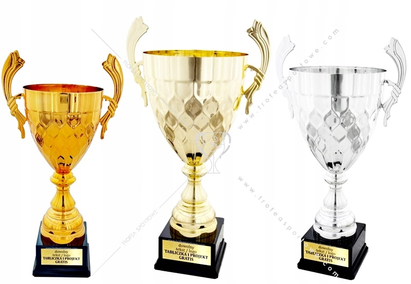 Оплачивая «Красивый комплект металлических чашек золотой серебряный коричневый 51-47-41 см + гравюра», вы можете быть уверены, что данное изделие из каталога «Кубки и статуэтки» будет доставлено из Польши и проверено на целостность. В цене товара, указанной на сайте, учтена доставка из Польши. Внимание!!! Товары для Евросоюза, согласно законодательству стран Евросоюза, могут отличаться упаковкой или наполнением.