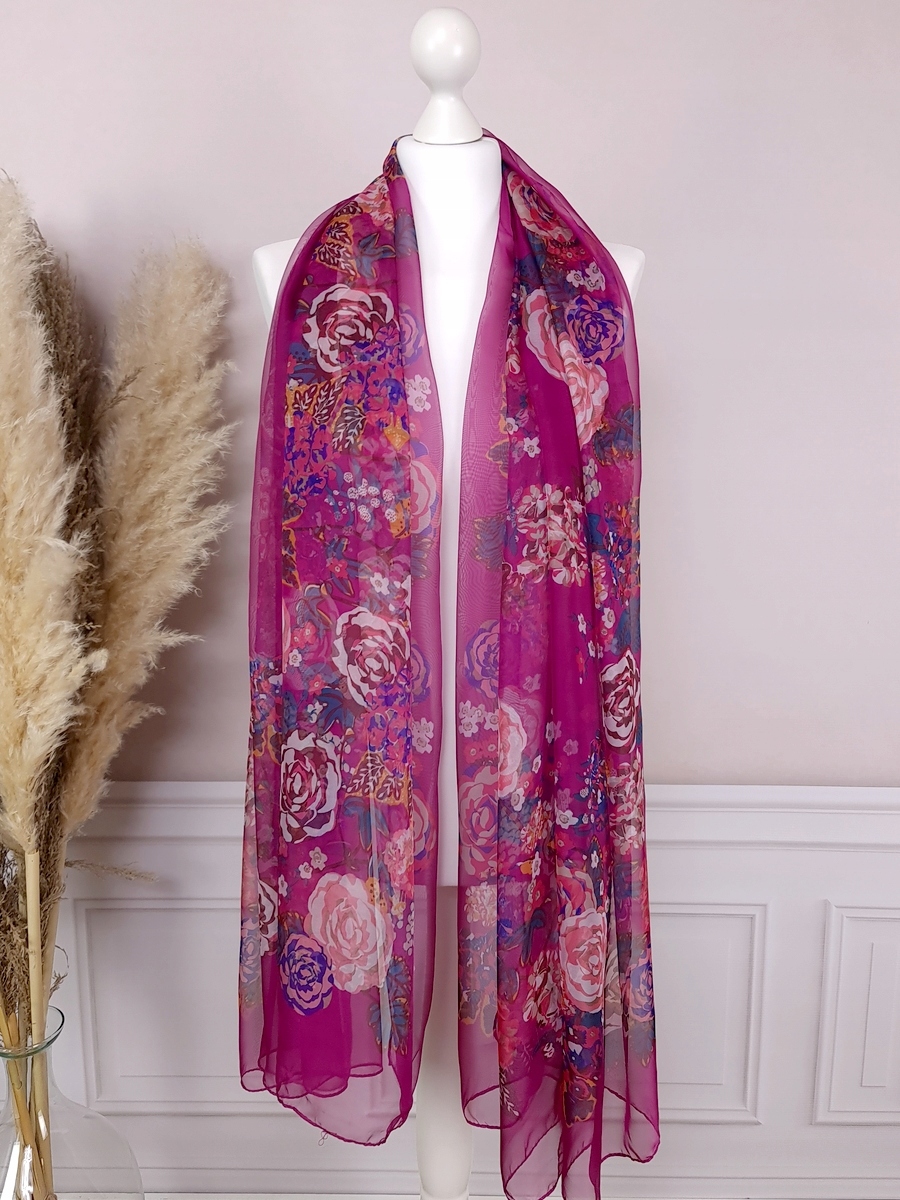 - большие размеры шарфа позволяют модно обернуть его вокруг шеи, свободно свисать вниз или накинуть на плечах и спине.