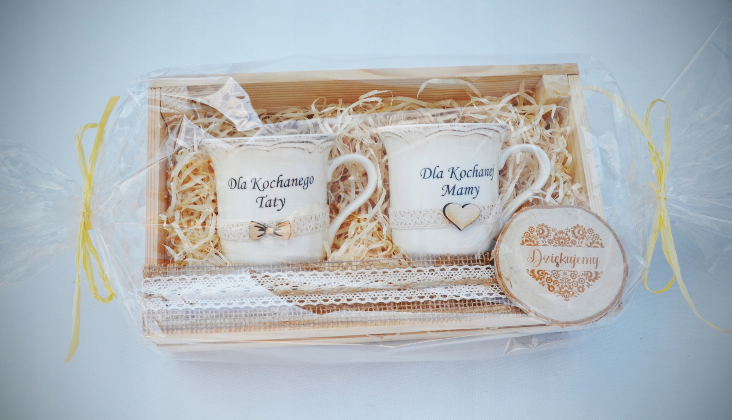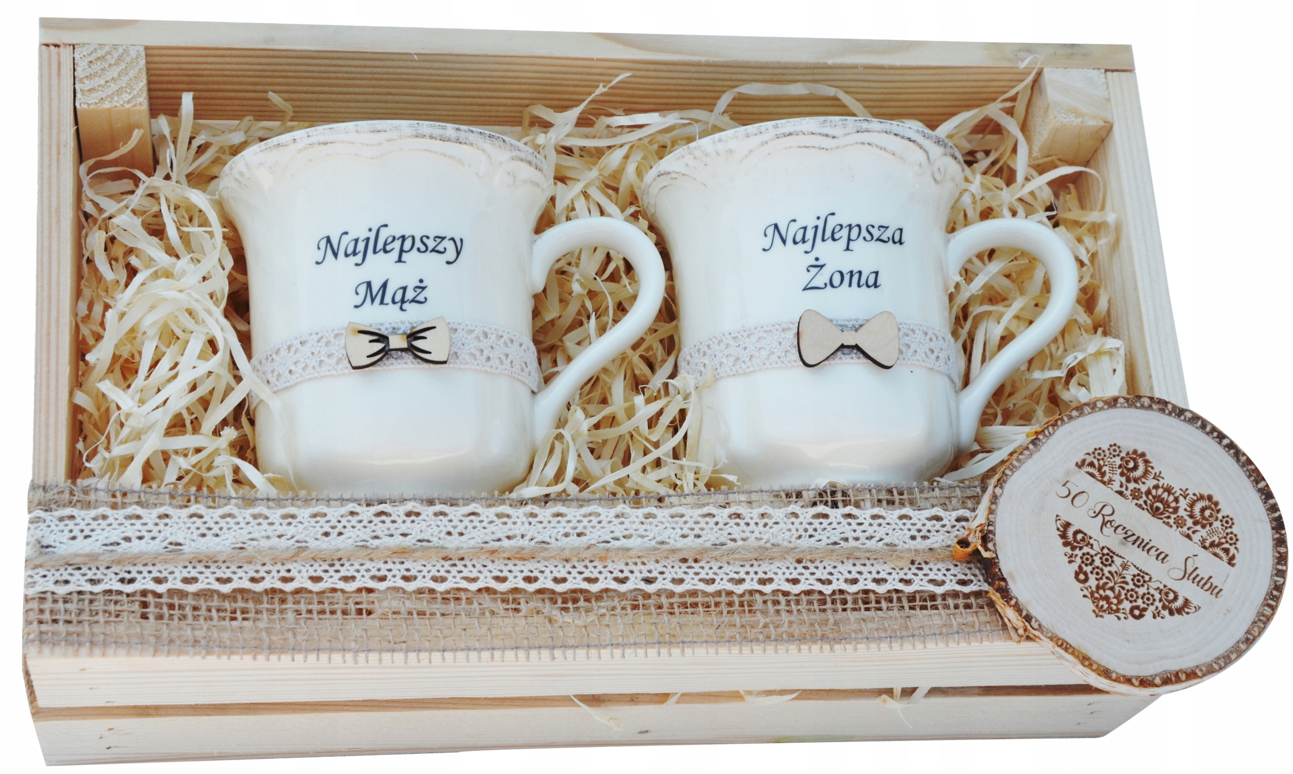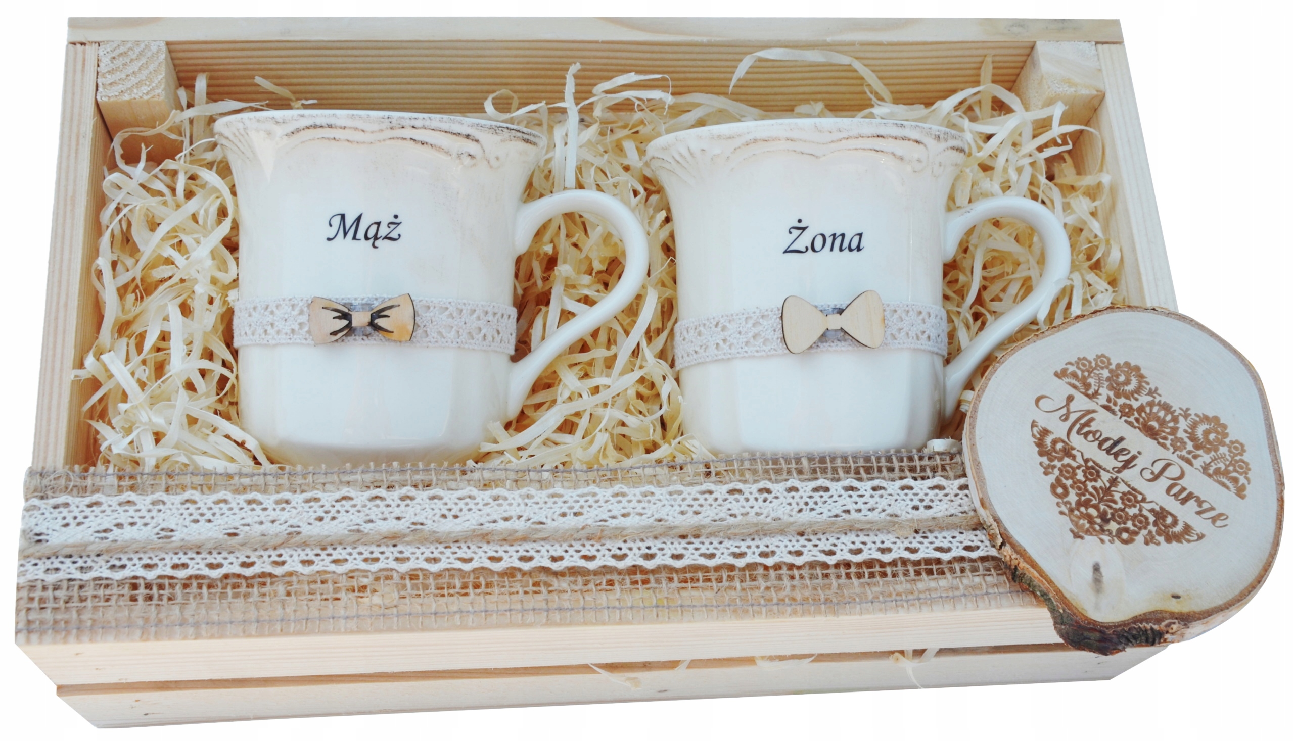 Изысканный подарок на свадьбу и юбилей – практичный и оригинальный набор качественных КРУЖЕК из Ходзежского ФАРФОРА – уникальный и эксклюзивный набор в деревянной шкатулке с кусочком обожженного дерева.