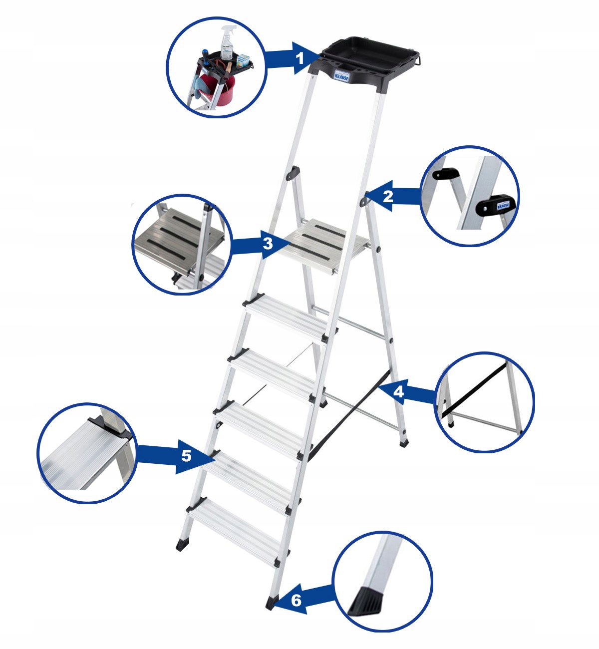 алюминиевая отдельная лестница из серии Krause Monto с многоградной системой -это версия свободных лестниц, предназначенных как для профессионалов, так и для DIY. Характерной особенностью этой модели является укрепленным, но легкий дизайн , более широкие, рифмы (100 мм) , профилированная платформа (анти-sip-system) и оригинальная конструкция полки инструмента с практической функцией для ведра. Стабильные соединения шагов с продовольственными продолами гарантийной силой при нагрузке. долговечный и устойчивый к погодным условиям , они изготовлены из специального пластика (4CS) , что позволяет использовать лестницу снаружи.