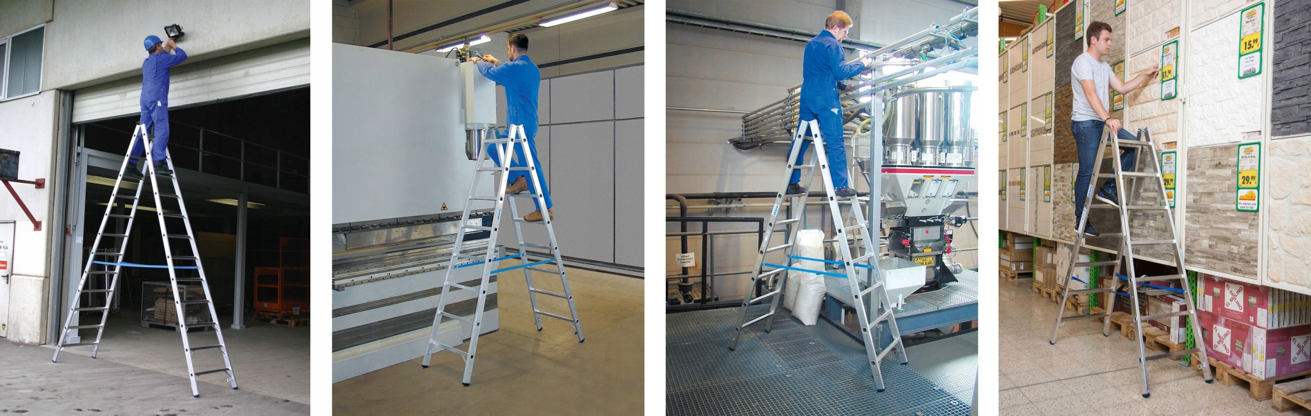 Практическая двусторонняя алюминиевая лестница KRAUSE, серия STABILO 2х7 перекладин – лучший пример хорошего соотношения цены и качества. Усиленные края лонжеронов повышают устойчивость. Шпильчатые соединения ступеней с косоурами обеспечивают долговечность и прочность лестницы на долгие годы. Привинчивающиеся ремни предотвращают самопроизвольное раскладывание лестницы во время использования. Рубчатая поверхность ступеней выполняет противоскользящую функцию, а дополнительные усиления в нижней части лестницы гарантируют долговечность под нагрузкой. Как и все лестницы KRAUSE, эта модель также оснащена двухэлементными ножками SafetyCap, предотвращающими скольжение лестницы во время работы.
