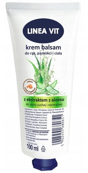 БАЛЬЗАМ, КРЕМ ДЛЯ РУК, НОГТЕЙ И ТЕЛА С ЭКСТРАКТОМ АЛОЭ ДЛЯ СУХОЙ И НОРМАЛЬНОЙ КОЖИ LINEA VIT 100МЛ