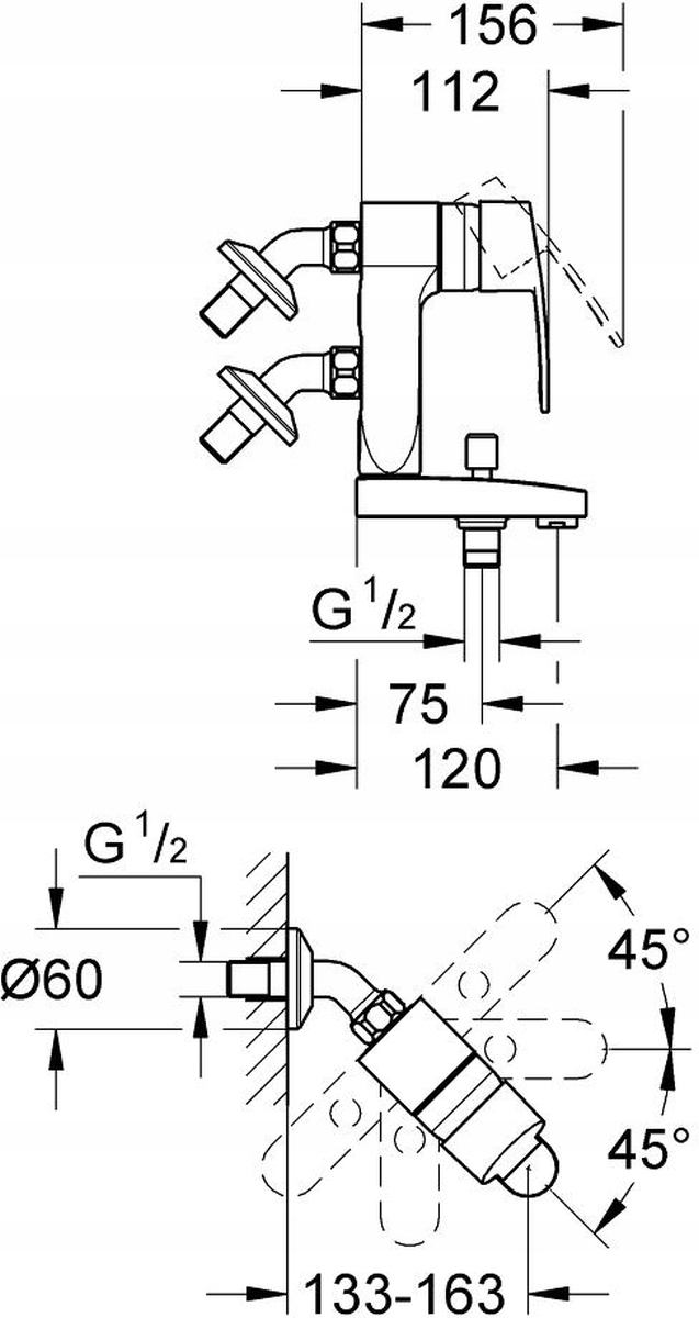 НАСТЕННЫЙ СМЕСИТЕЛЬ ДЛЯ ВАННЫ и ДУША GROHE VERTICA