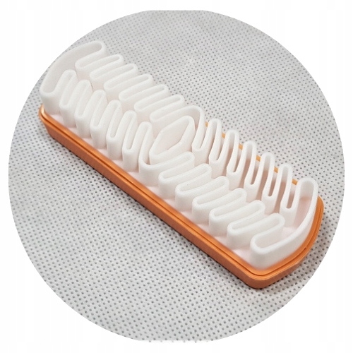 👞 Вместо щетинок у нее полоска из мягкой резины, имеющая форму форма, напоминающая мятую папиросную бумагу, которая помогает легко чистить обувь.