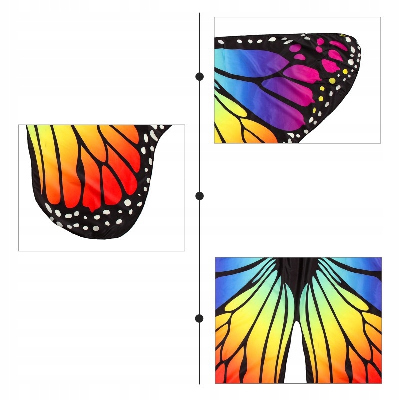 ✅ Крылья бабочки (накидка): Красивые разноцветные сказочные крылья, сделанные из легкий и удобный материал. Крылья завязываются на шее и имеют на концах эластичные резинки, которые можно надевать на пальцы, позволяя ребенку свободно растягивать крылья.