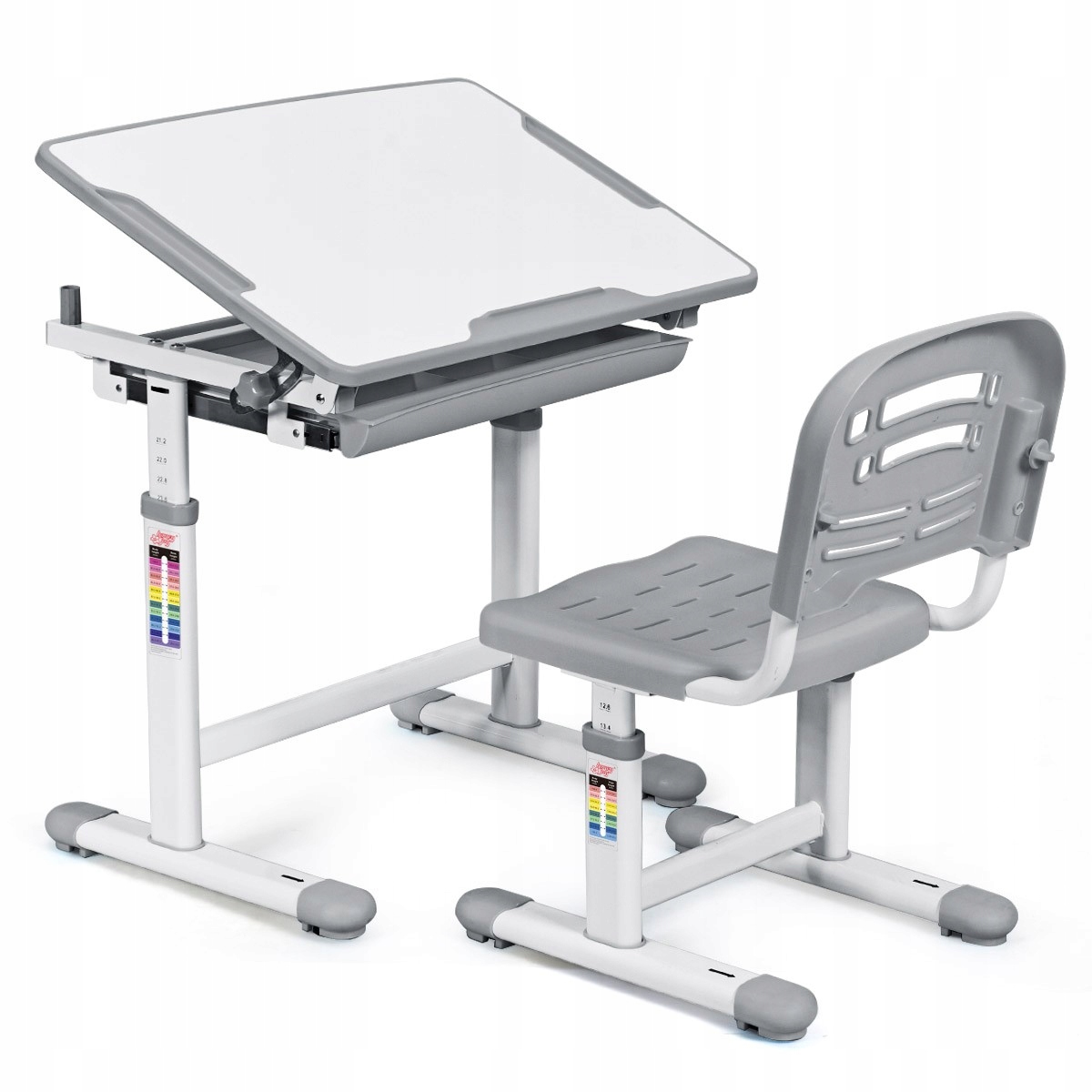 Регулируемость - возможность регулировать высоту стола от 54,5 до 77 сантиметров и высоту стула от 32 до 44 сантиметров позволяет набору расти вместе с ребенком. Благодаря функции изменения угла наклона столешницы от 0 до 40° вы легко сможете настроить стол под себя и свою конкретную деятельность