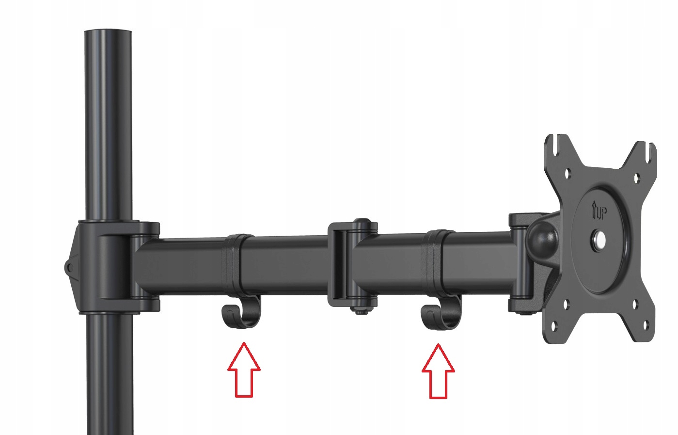 Держатель имеет три крючка, через которые можно прокладывать кабели, например HDMI, DVI, VGA или кабели питания