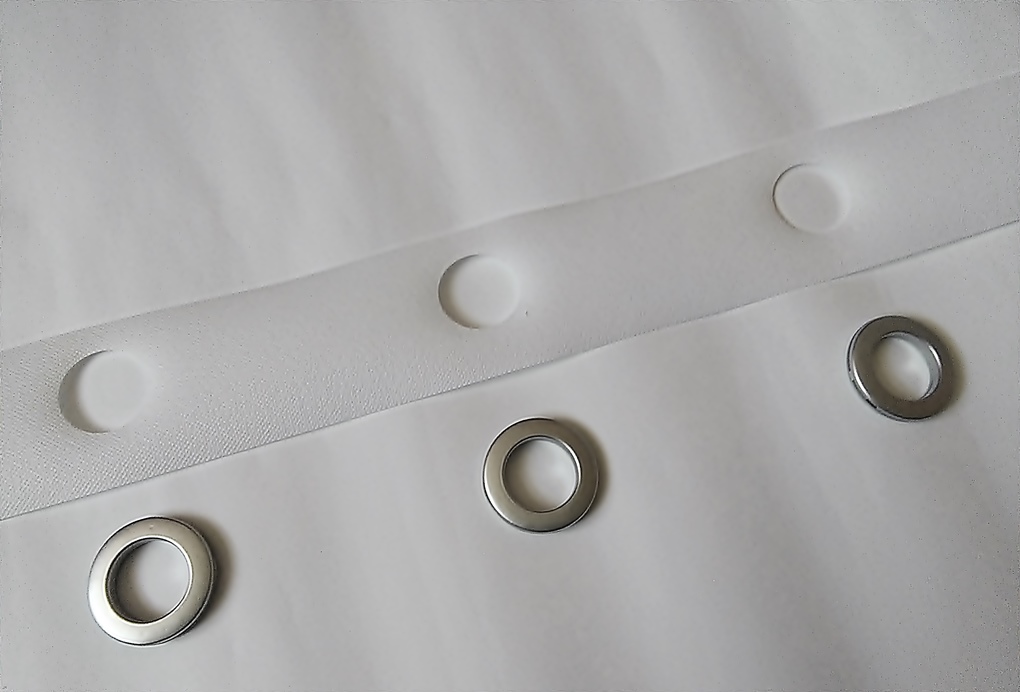 Белая лента жесткости с пластиковыми люверсами выбранного цвета и размера. Лента идеальна как для штор, так и для портьер.