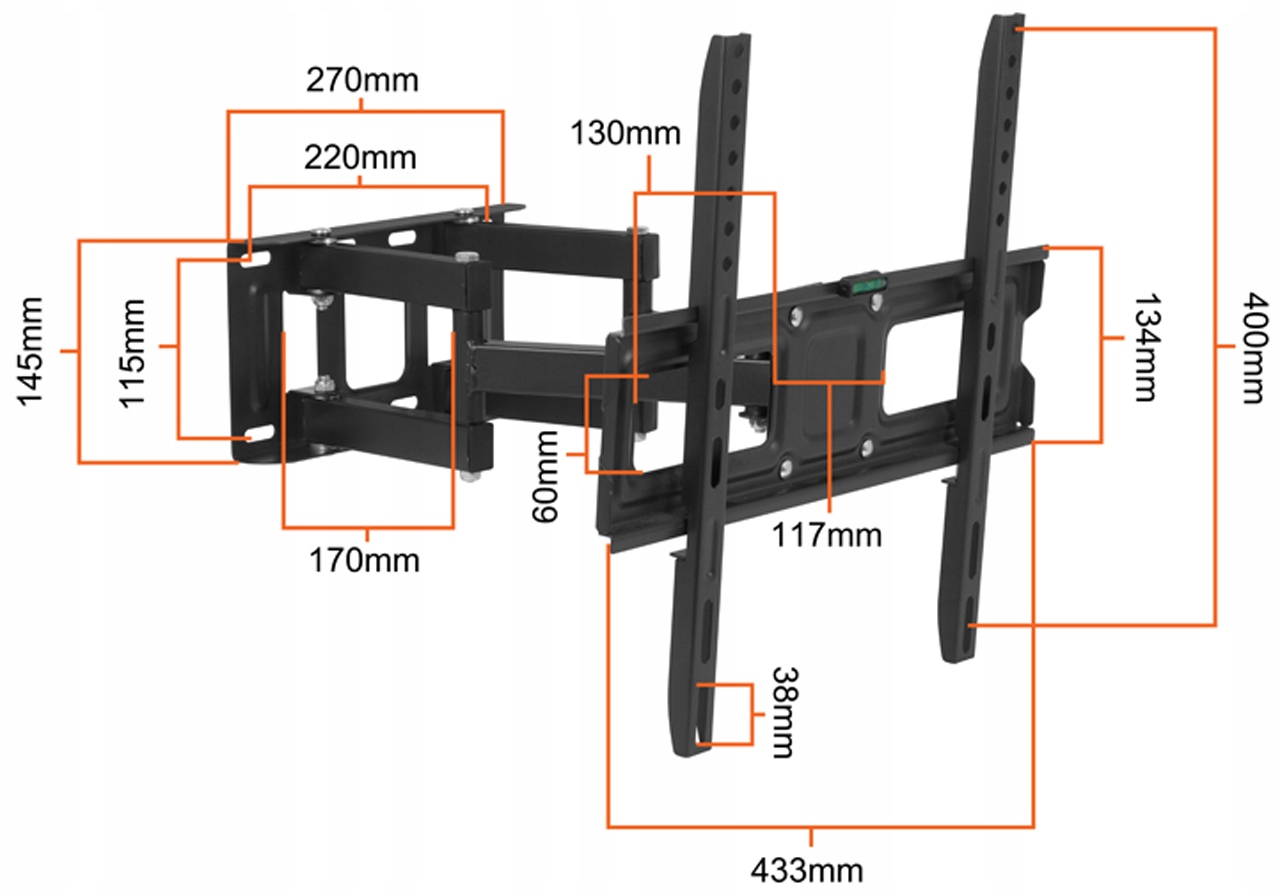 Универсальное настенное крепление для телевизора изготовлено из высококачественного армированного металлического сплава, что обеспечивает исключительную прочность конструкции и длительный срок службы изделия. Его прочная конструкция позволяет безопасно монтировать телевизоры весом до 60 кг, что делает его подходящим решением также для больших и тяжелых моделей телевизоров.