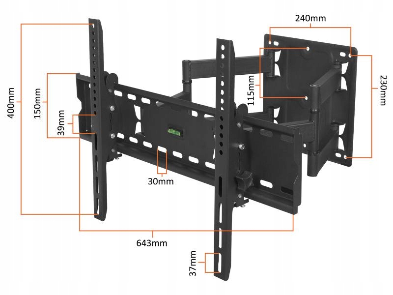 Подвеска предназначена для телевизоров с диагональю от 32 до 75 дюймов. Кроме того, он выдерживает нагрузку до 40 килограмм. Таким образом, обеспечивается оптимальный уровень безопасности для каждого установленного устройства.