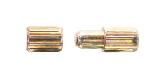 Направляющий блок столешницы, используемый в выдвижных столах для направления вставок столешницы. Штифт предназначен для вбивания отверстий диаметром 8 мм. Крепежный узел для столешниц изготовлен из стали с желтой оцинковкой. Элемент также можно использовать там, где требуется направлять два разных элемента.