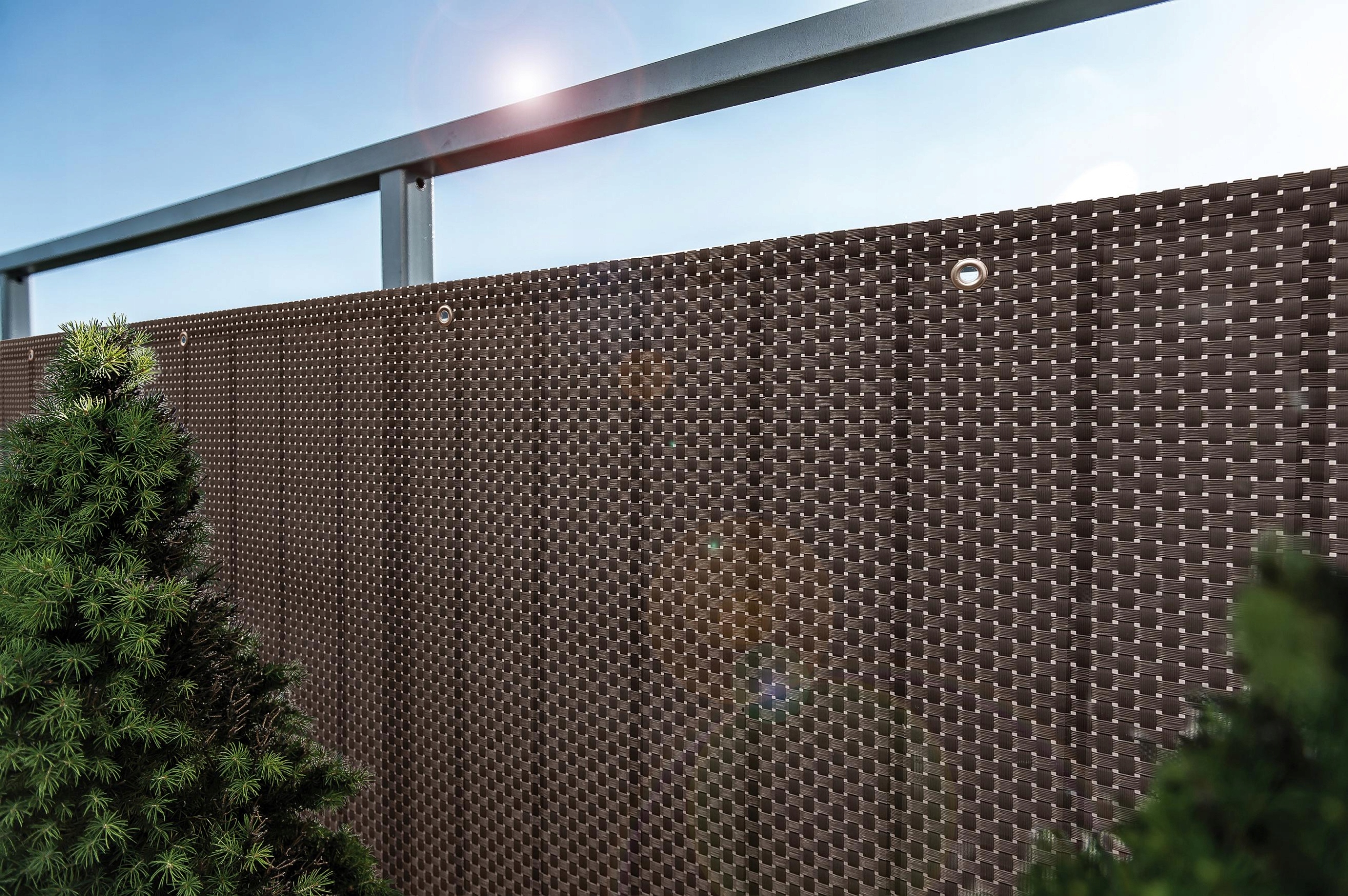 Коричневое покрытие из техноротанга UMBRA благодаря переплетению толстых полос обеспечивает максимальную конфиденциальность, пропуская при этом свет, благодаря чему балкон или терраса не слишком затенены.