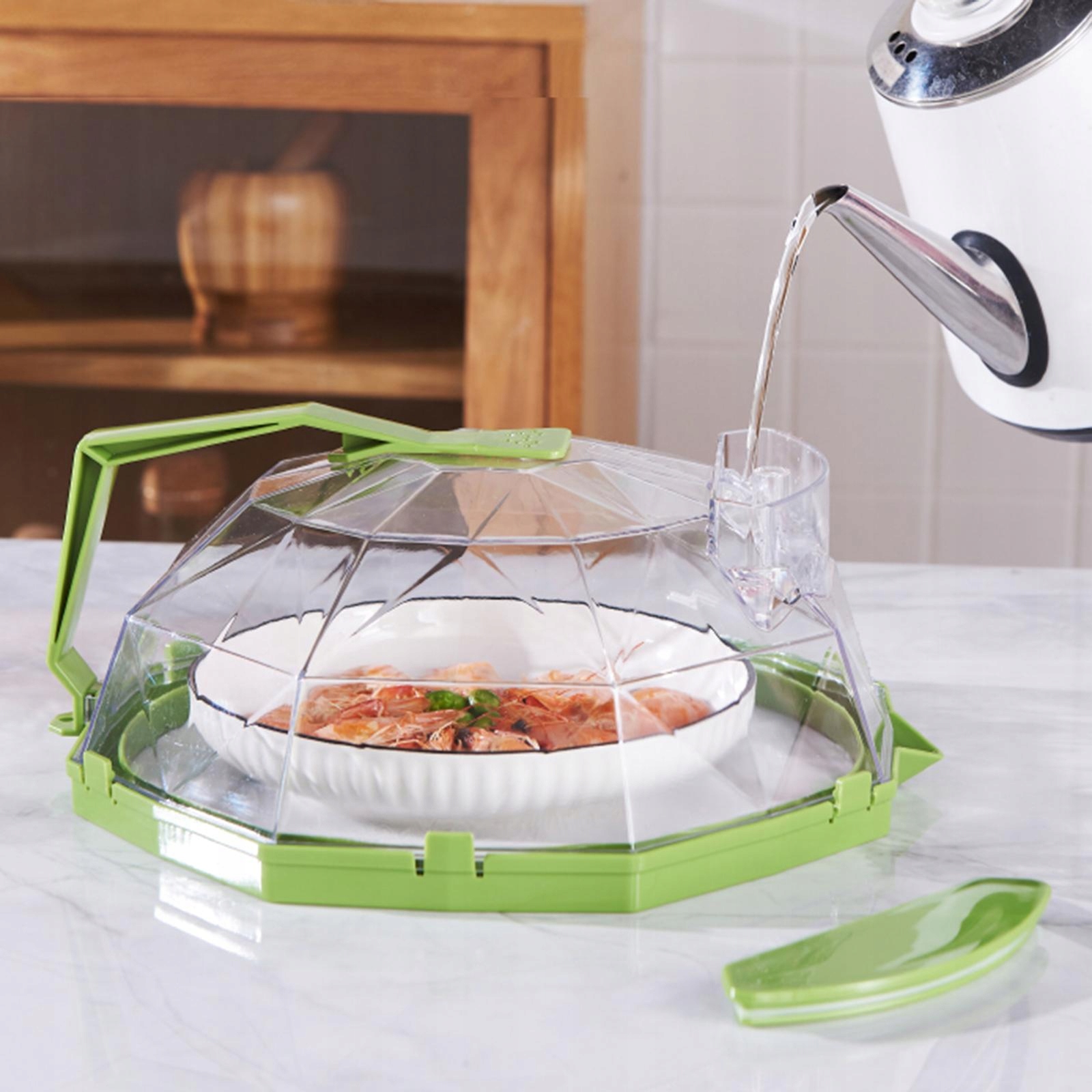 Крышка микроволновой печи с крышкой резервуара для хранения воды, легко убирать и чистить, зеленый цвет